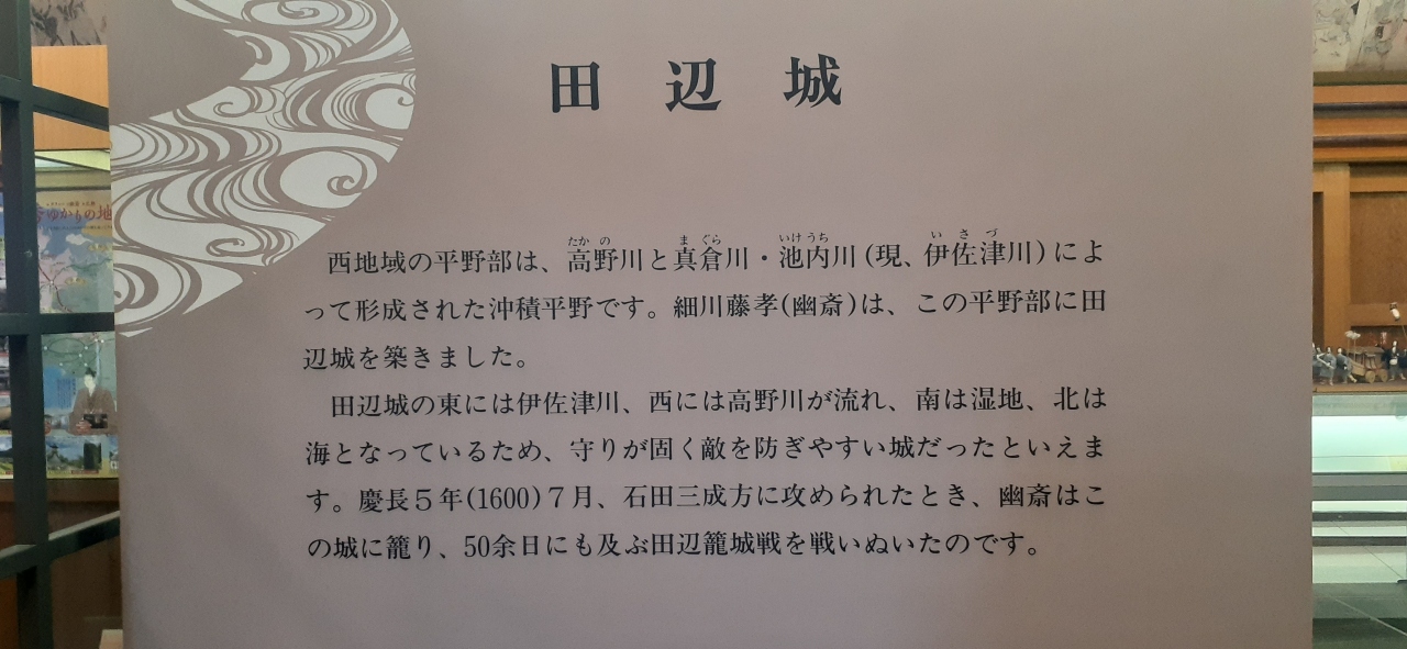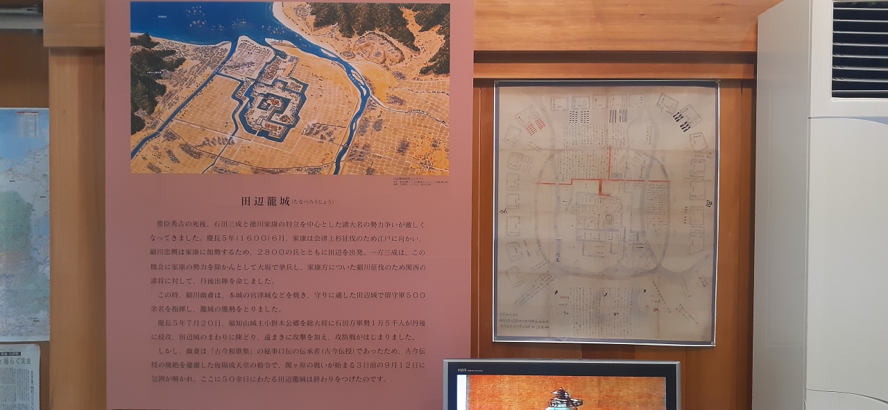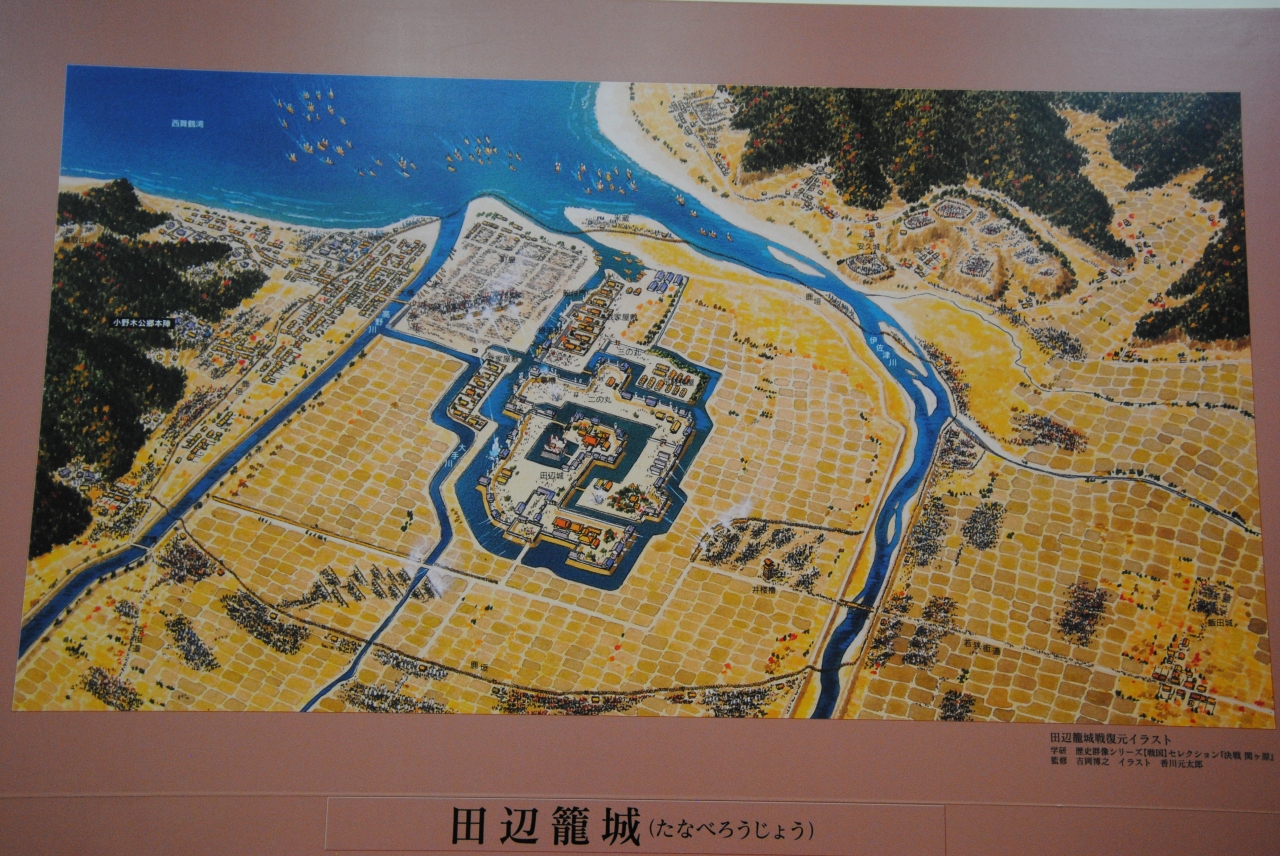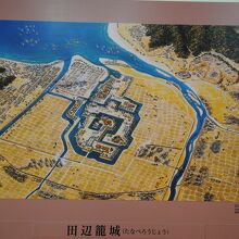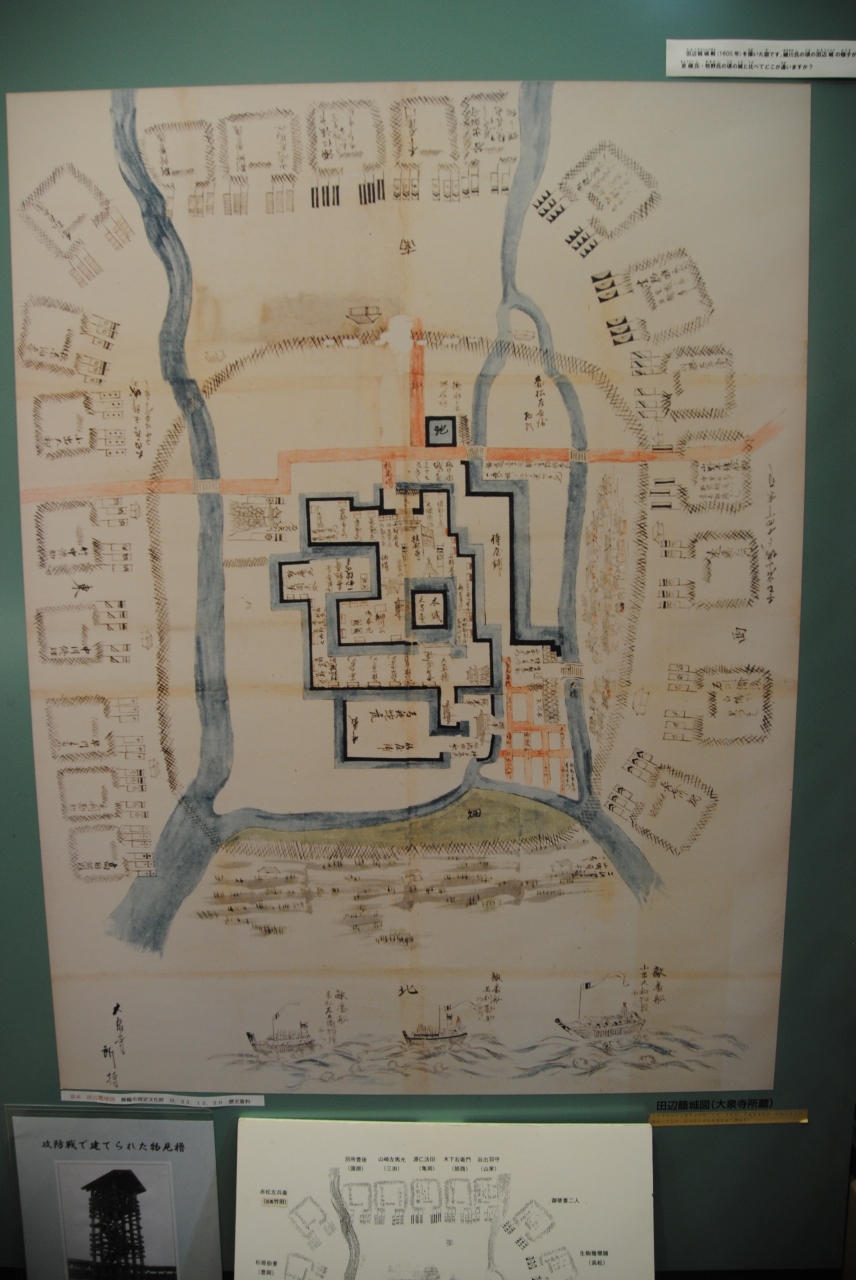 当時の地図があって、田辺城は、海に近い平城であったことがわかります。