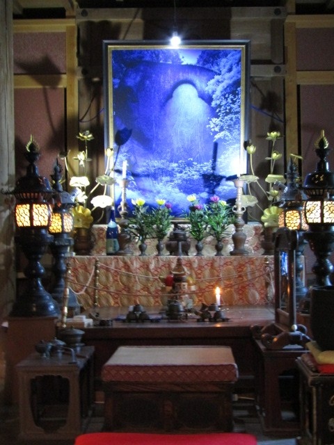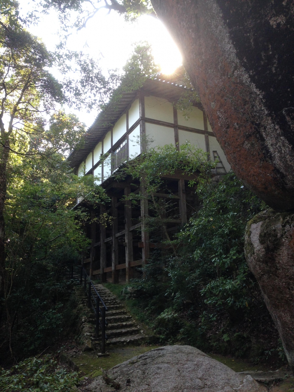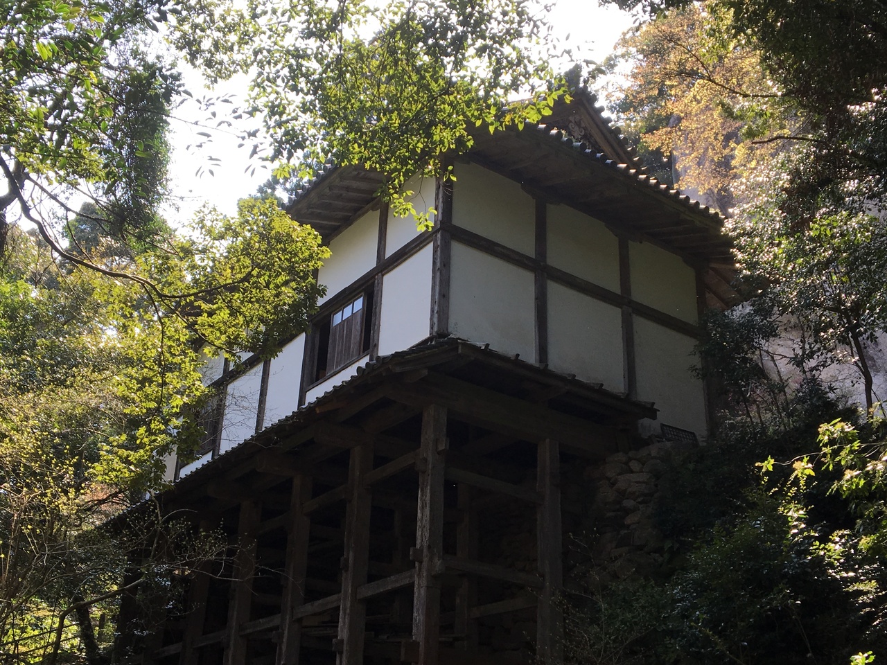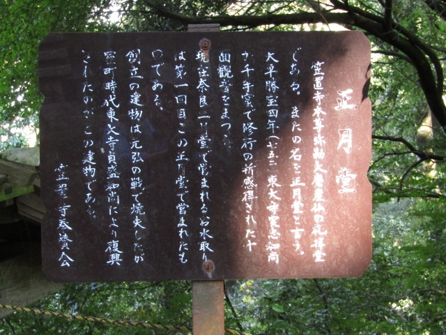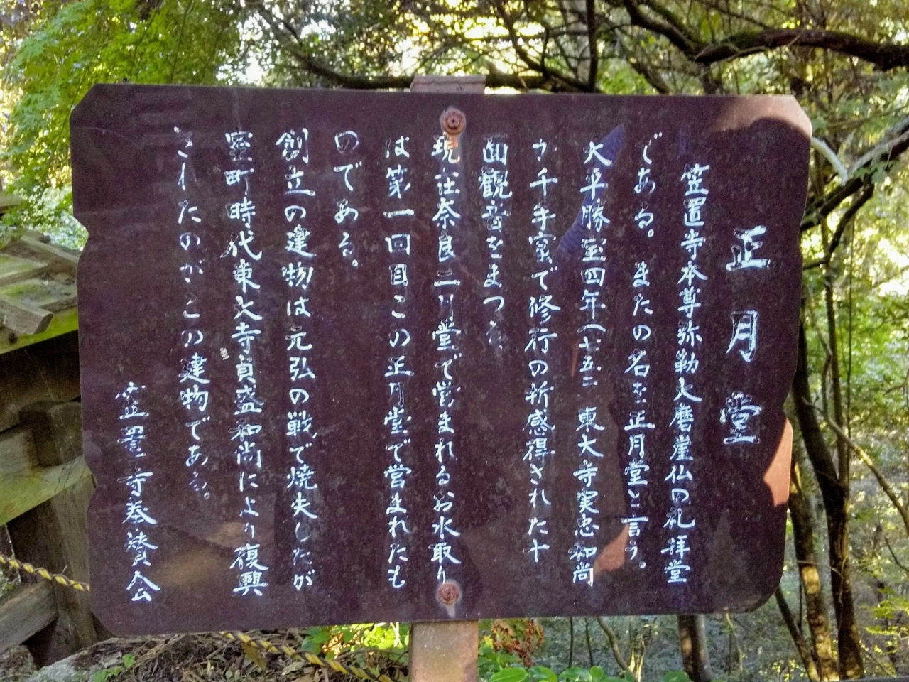 正月堂から右下へ下ると、清水寺のような懸崖造りのお堂であることがわかりますが、焼失以前のお堂はもっと大きかったそうで、旧堂の礎石がありました。