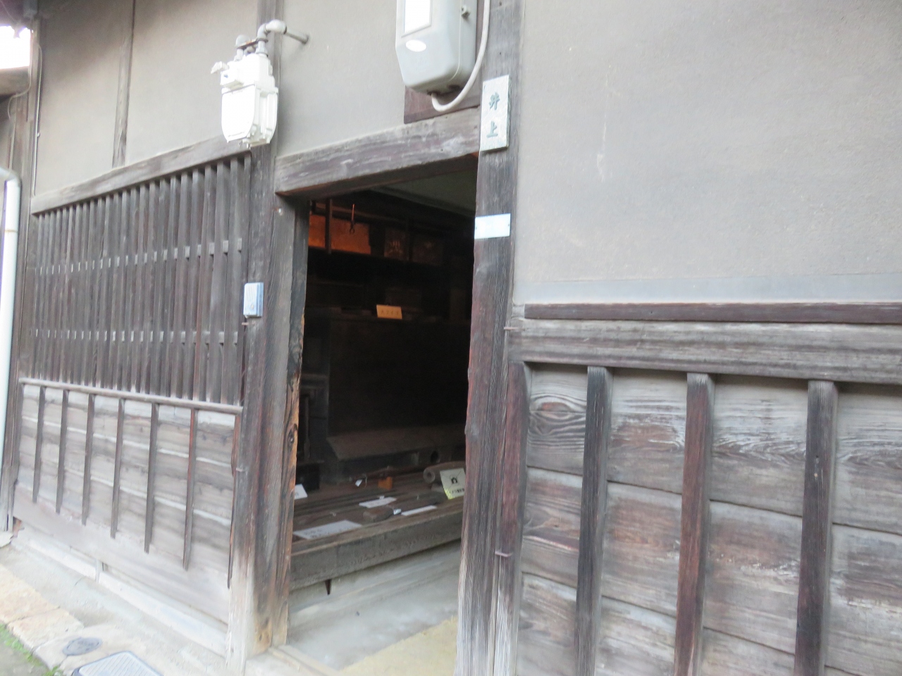 日本一といわれる高さ1メートル、長さ2メートル余りの吹子が保存されている井上関右衛門家の鉄砲鍛冶屋敷
