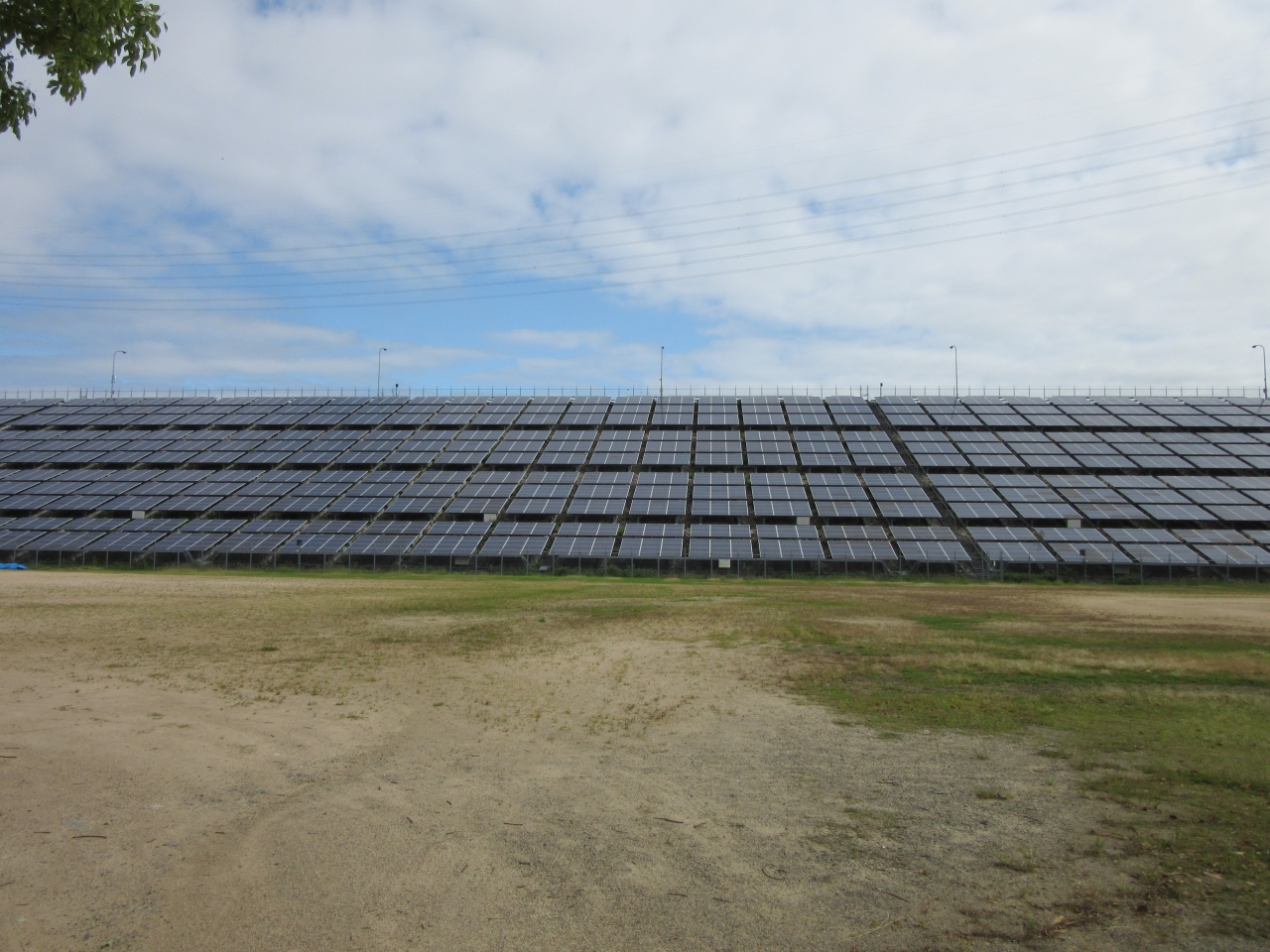 ロックフィルダムは遮水土の両側を岩で覆って造られたダム、構... 続きを読む造像堤体の傾斜は下流側・ダム湖側共に緩やかになります。そして権現ダムは下流側が南に開けていると言う立地のダム、ダムの下流側の斜面を有効利用すると言う事で「権現ダム太陽光発電所」が設けられています。傾斜が緩やかなロックフィルダムである事、堤体の方位など諸条件のクリアが必要ですが、山の斜面に造られた太陽光発電所より余程土地の有効活用だと思います。