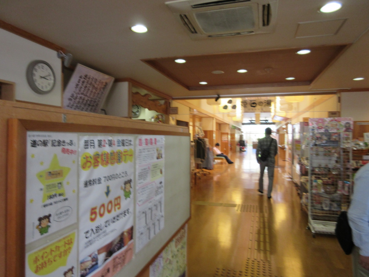 道の駅併設の日帰り温泉、道の駅の売店は17:00閉館ですが温泉は19:30受付終了、道の駅スタンプや道の駅カードは受付終了まで押印や購入可能