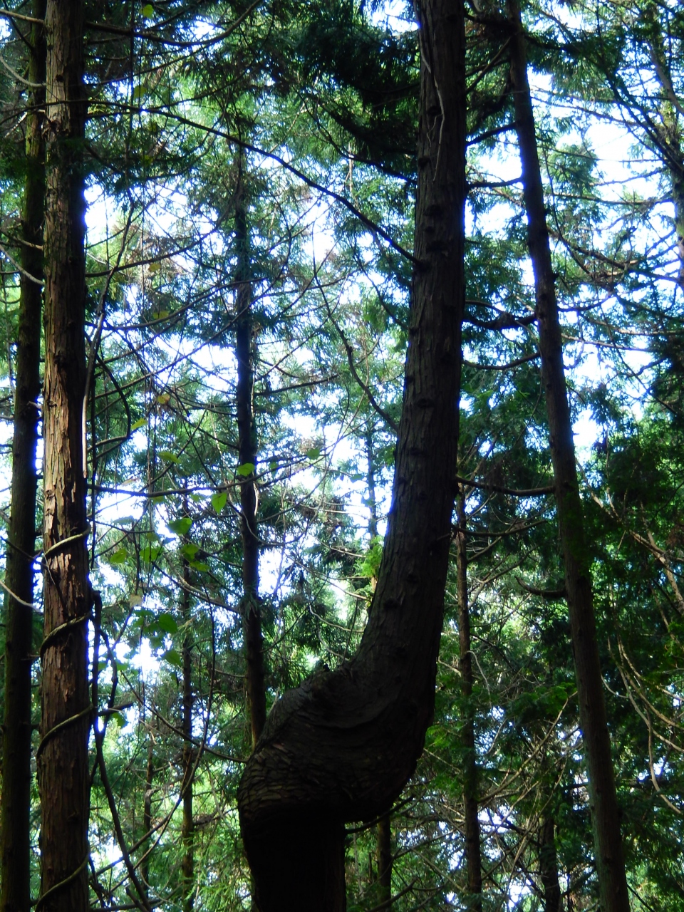 しかし登山の苦しさは実りある苦労でもありました。急な傾斜を過ぎ山の尾根近くをそって蛇行する中盤は、自然の変化を見る余裕ができてとても楽しかったです。よく見れば様々なキノコが生えていますし、早くも柿や栗がなっているところもありました。また植生や石質も多様に変化していきました。石質ひとつ取ってみても、和歌山城の石垣にも使われている青石や、もっとキラキラした欠片の入ったもの、丸みをおびて平板なもの、白地に褐色の線状模様が入っているものなど、入れ替わるように変化していき驚きました。