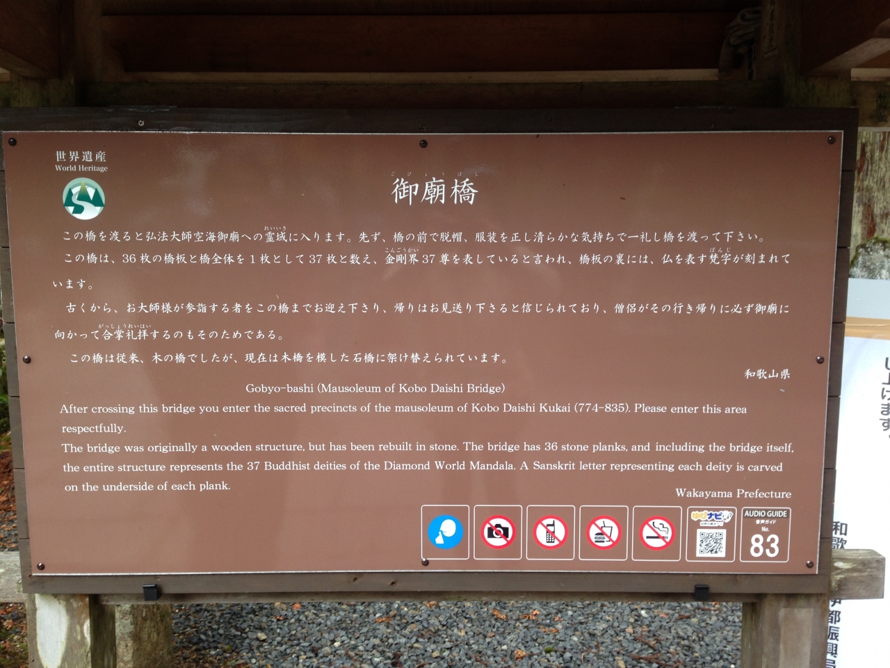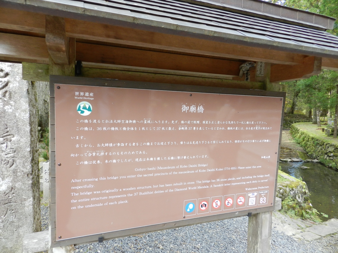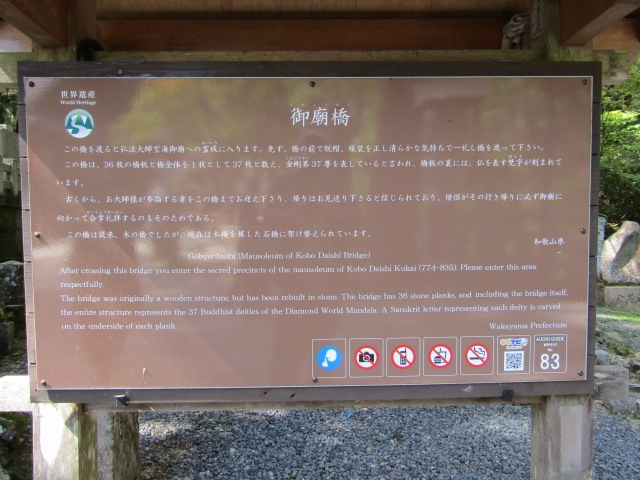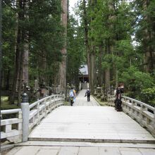 橋板が37枚あり、金剛界曼茶羅の37尊に因んだもので、これより先が聖域と崇められる。