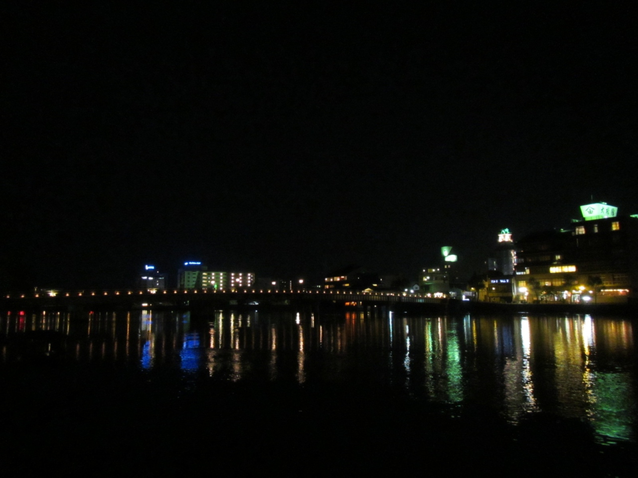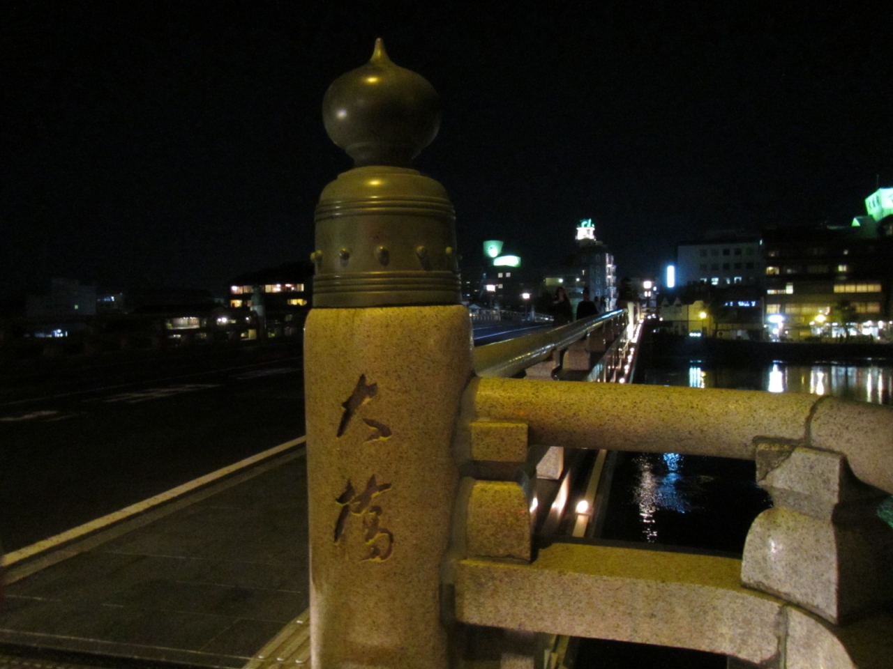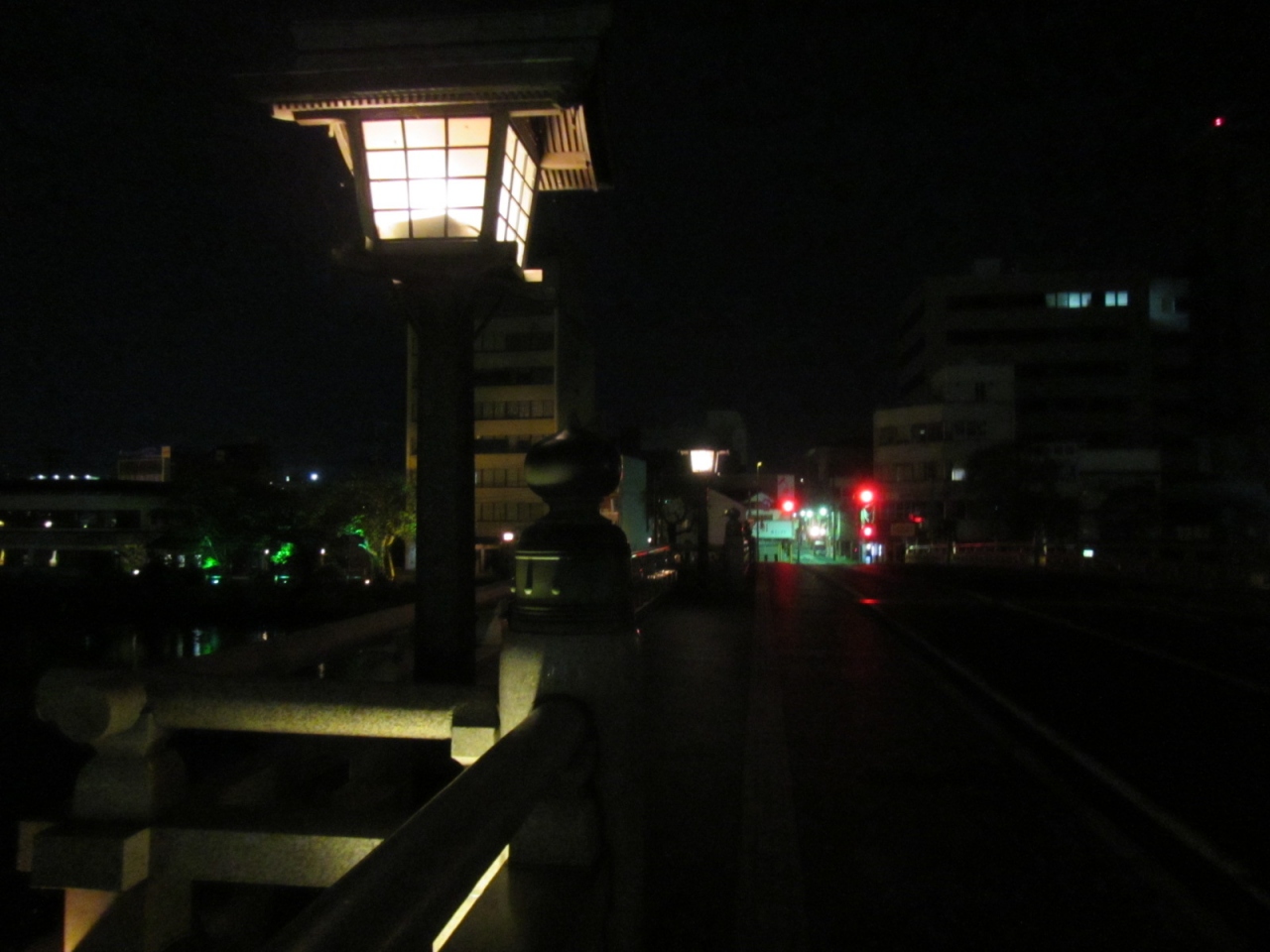 訪れた時は夜で、京橋川沿いはカラコロ工房のライトアップなどがされていましたが、大橋川沿いはそれに比べたらやや暗い感じでした。