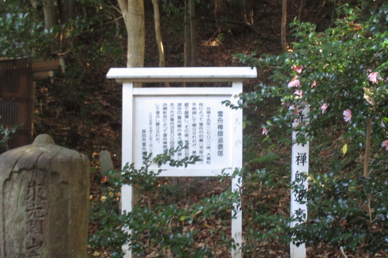 お墓の真後ろに隠れる様に「雪舟禅師追褒塔」がありました。雪舟顕彰会が500回忌を記念して2005年(平成17年)に建立したもので、元のお墓の場所を保存することを目的にしたものだそうです。