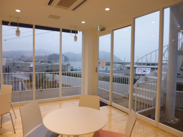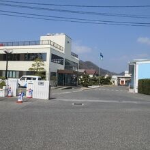JR忠海駅からも歩いていける距離ですが、呉線の運行本数が少ないので、電車で行こうとすると工場見学の時間には合わない可能性がありますのでご注意を! こちらの施設は最近建て替えられたらしく、目が覚めるようなブルーの壁、扉が素敵な建物です。