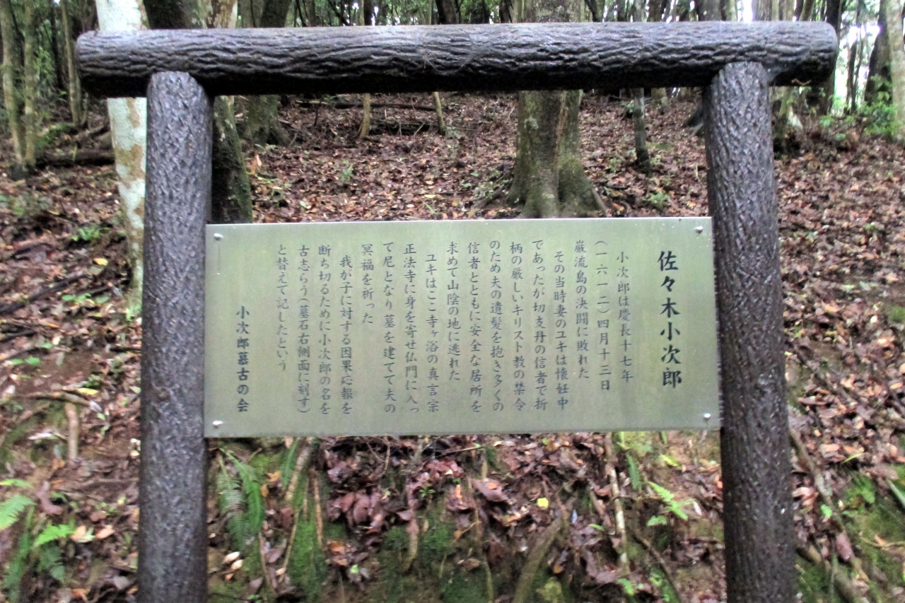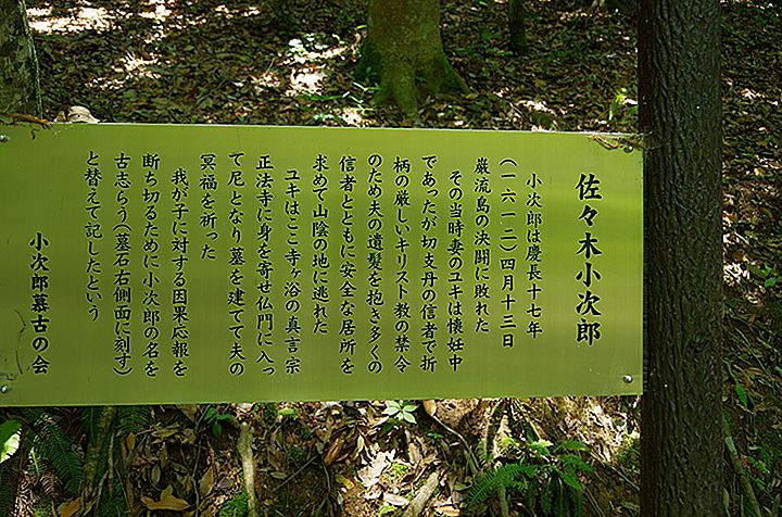 奥さんは実はキリシタンでキリスト教の禁令により安住の地としてこの地の正法寺に身を寄せ剃髪して尼となり、夫・小次郎の冥福を祈り菩提を弔うために墓を建て、その墓のすぐ下のお堂というか庵で一生を終えたといわれているのです。