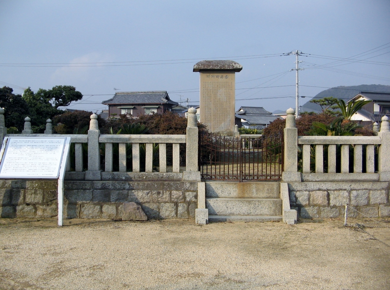 これが悲劇の崇徳上皇の仮の御所かと思われるさびしさです。数台車が駐車できる駐車場と御所跡を示す石造りの祠のようなものがあるだけです。訪れる人も少ないようで歴史の残酷さを感じました。
