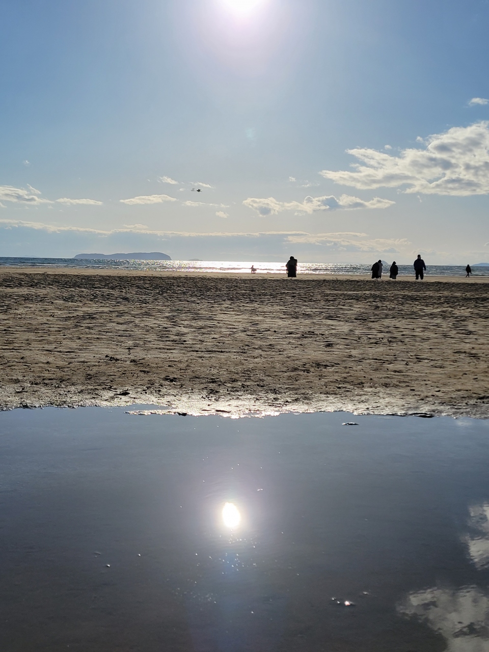 夕方4時半頃に到着。一見平坦な砂浜で広めなフツーの海水浴場です。 最初はいったいどこが「日本のウユニ塩湖なのか」と思いま... 続きを読むした。 来訪客は若者が多くけっこう賑わっていました。 徐々に日が暮れてくると平坦なるがゆえの潮だまりに雲が映り込み、幻想的な雰囲気になってきます。この日は少し風が出てきて、空の映りがイマイチでしたが、これで雲がもっと少なく、夕焼け空も含めて色味が出て、水面に映り込むようであればベストだったでしょうね。それにしても3月上旬思いのほか風が冷たく、日没時刻までは粘らずに撤収しました。 閉じる