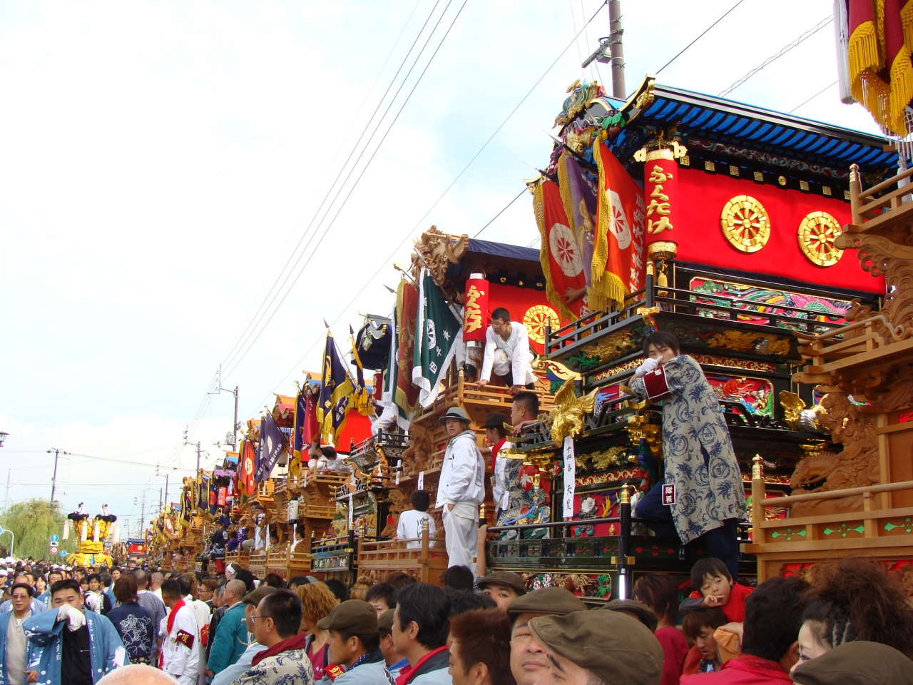 舁き夫と見物客、警備や報道関係でごった返しになりますが迫力ある屋台の絢爛豪華さはこの日を指定して訪れる価値があり、きっと記憶の残るものになるかと思われます