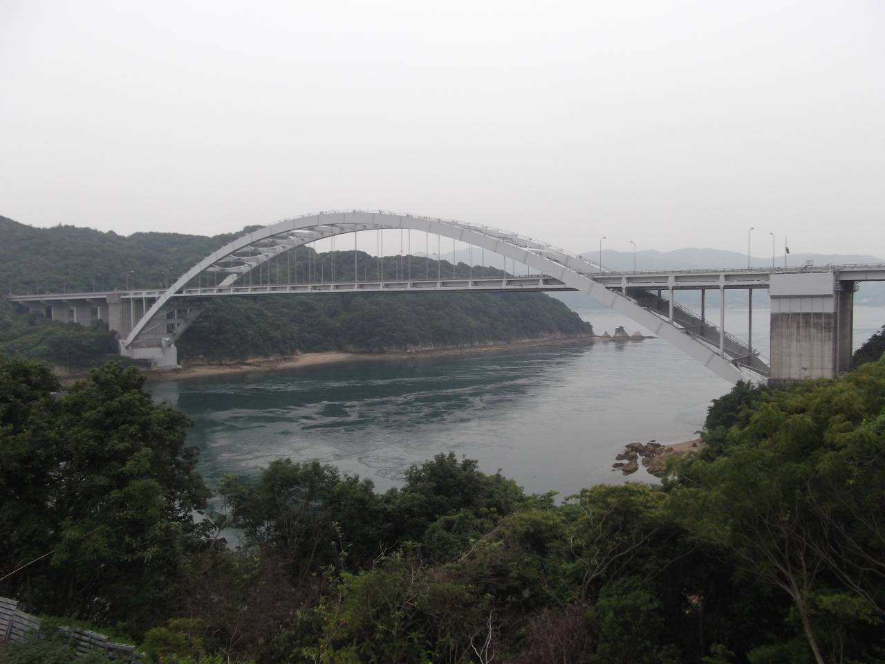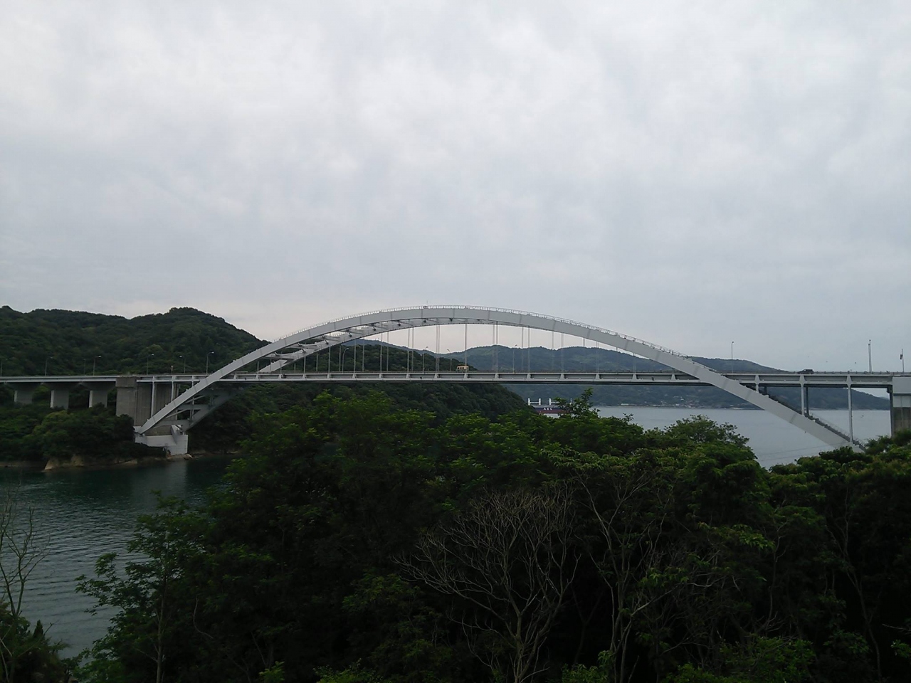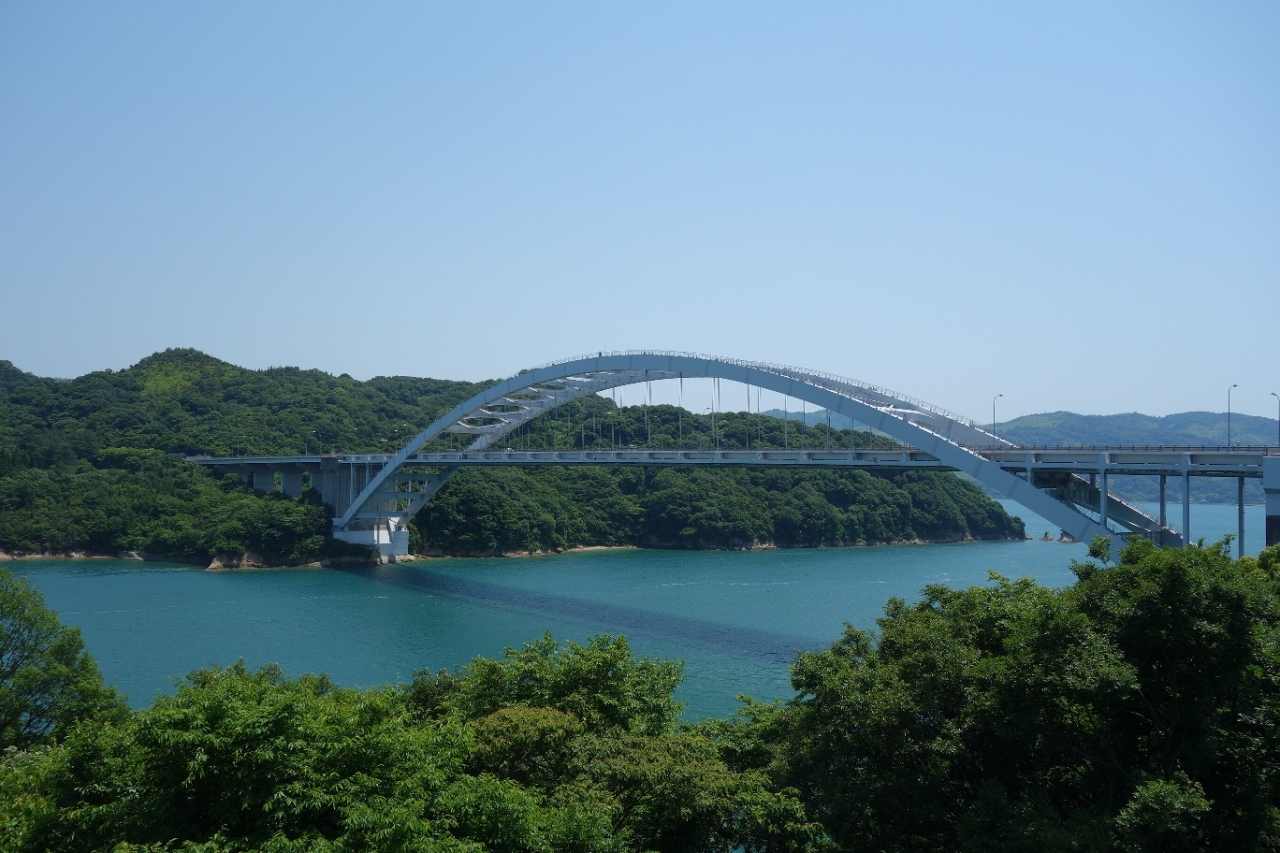 しまなみ海道の大三島と伯方島を結ぶ全長328mの橋で、しまなみ海道では唯一のアーチ橋です。しまなみ海道では一番短い橋の為、...  続きを読む車で走っているとあっと言う間に通り過ぎてしまいます。しかし、アーチ橋としては国内最大の橋だそうです。