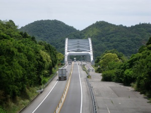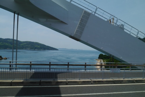 高速道路(厳密にはしまなみ海道は高速道路ではないのかな?)には珍...  続きを読むしく、道路の上まで鉄骨が張り巡らされたアーチ型になっています。