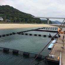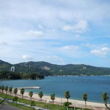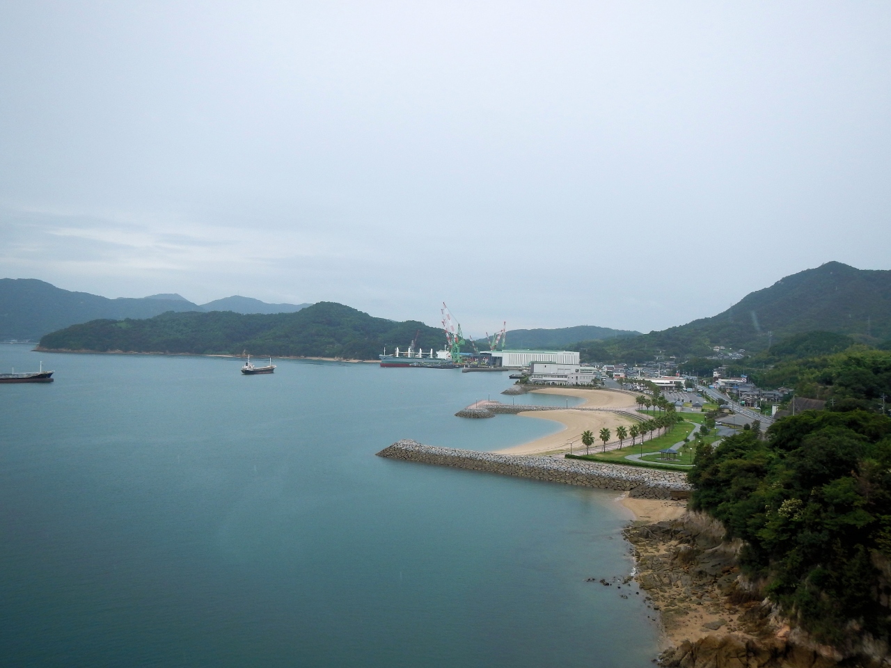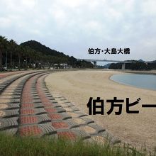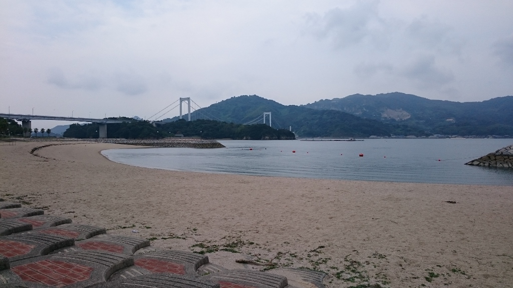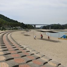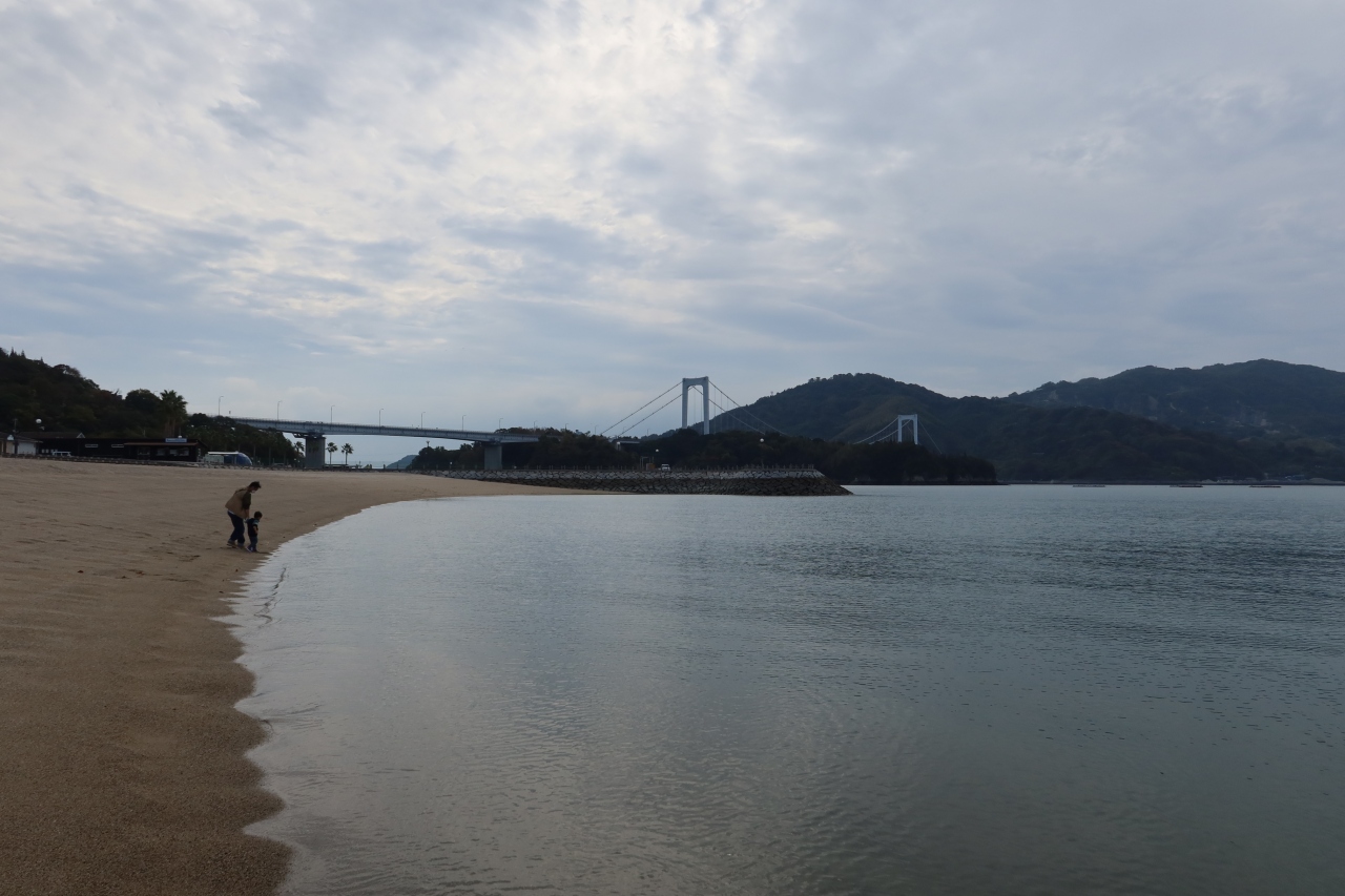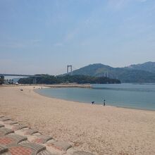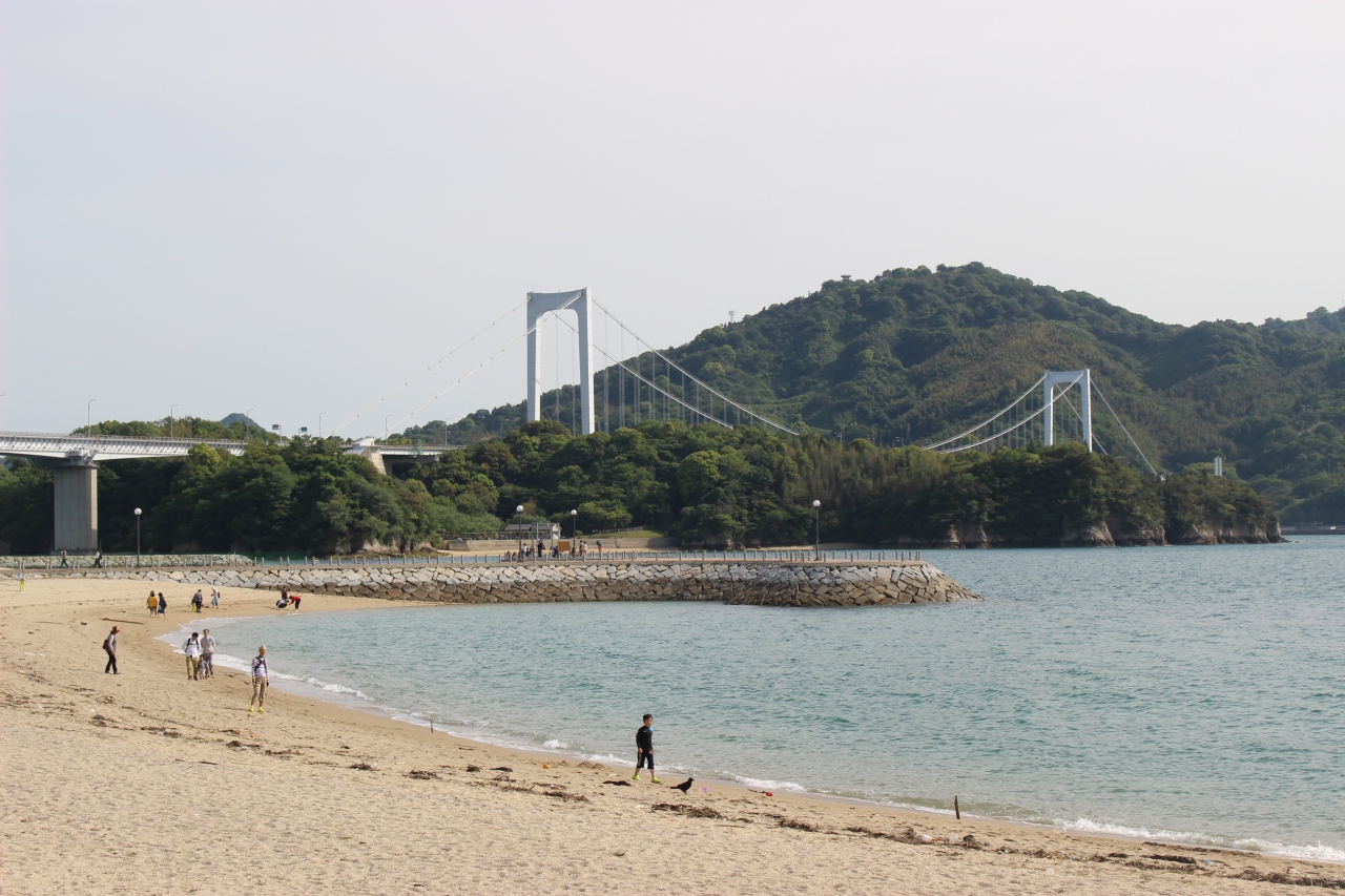 伯方・大島大橋のたもとの伯方S・Cパーク内にある人口ビーチで、夕日に照る橋の眺められるところです。