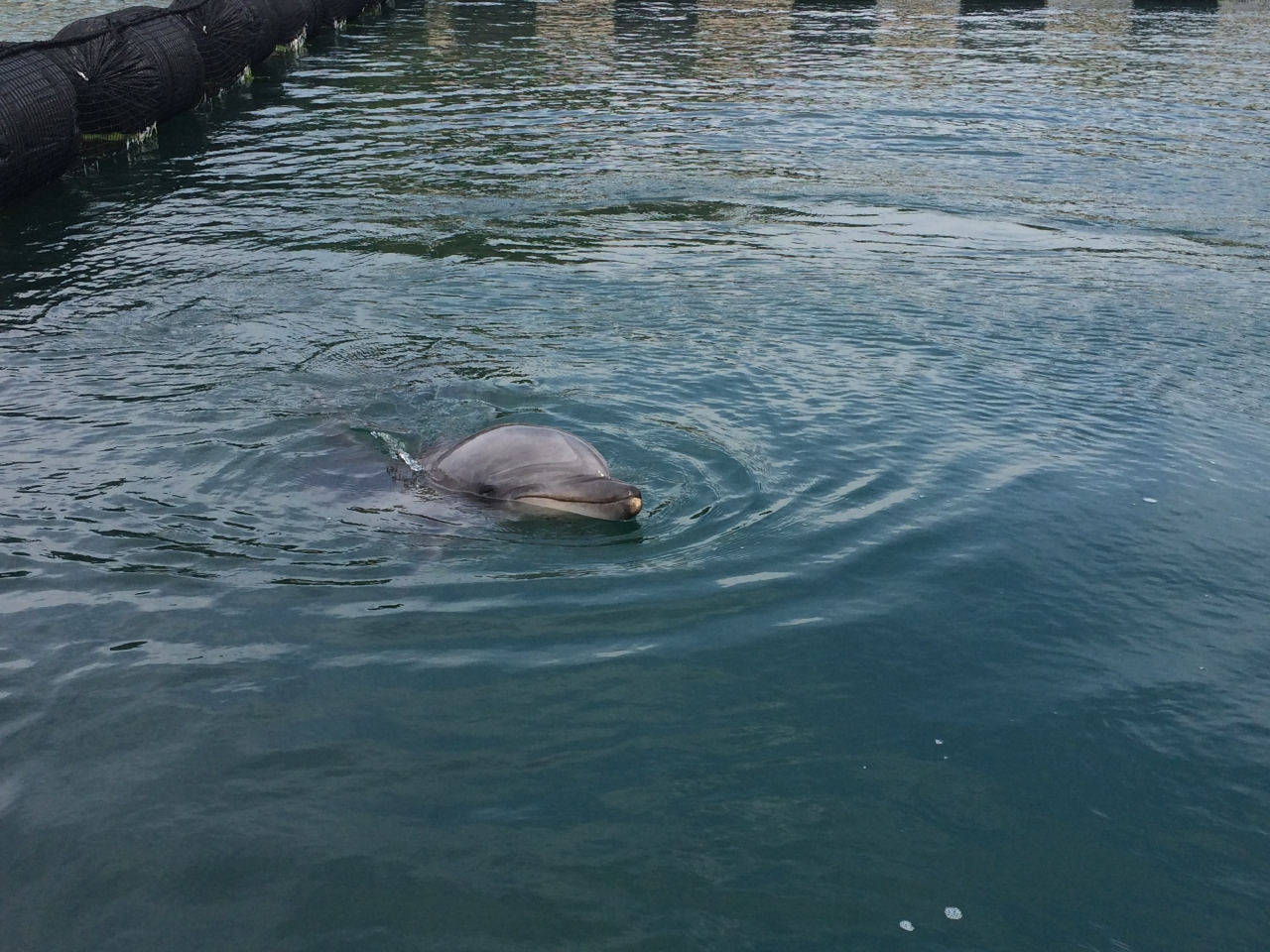 なんと海にイルカがいます。見学だけなら500円、一緒に泳ぐなら5000円ぐらいからです。見学だけしました。イルカは6頭ぐらいいます。私達が歩いたらついて来たりし、とても人懐っこいです。