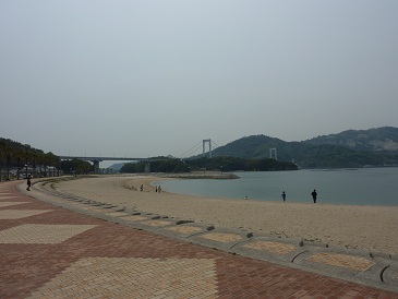 伯方・大島大橋のたもとの伯方S・Cパーク内にある人口ビーチで、夕日に照る橋の眺められるところです。