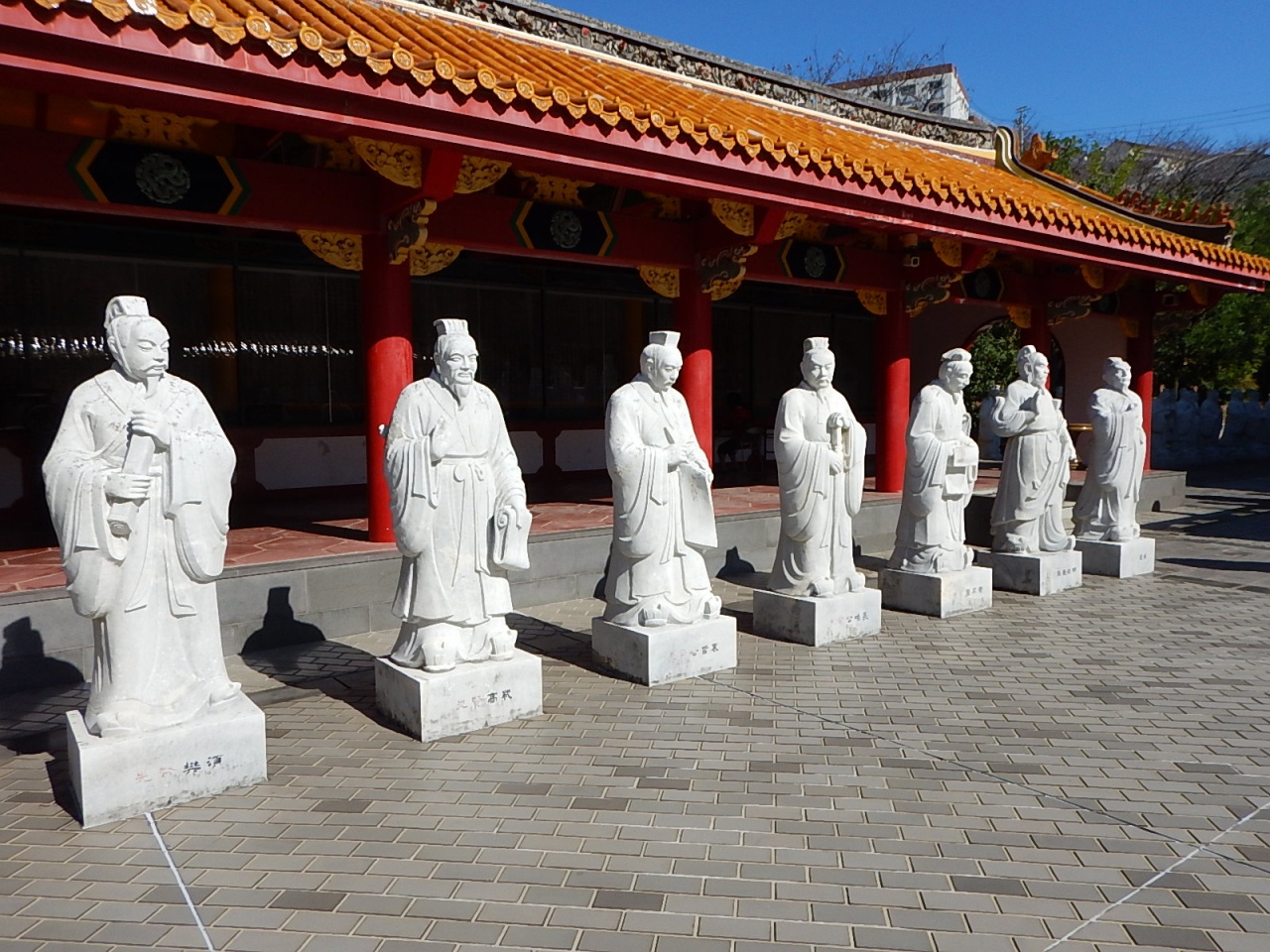 中に入ると中華風の社屋があります。孔子のお弟子さんなのかは不明ですが、中国の哲人たちの像があったり、特にグラバー園のイメージで来るとまた違う国に来たなと感じてしまいます。