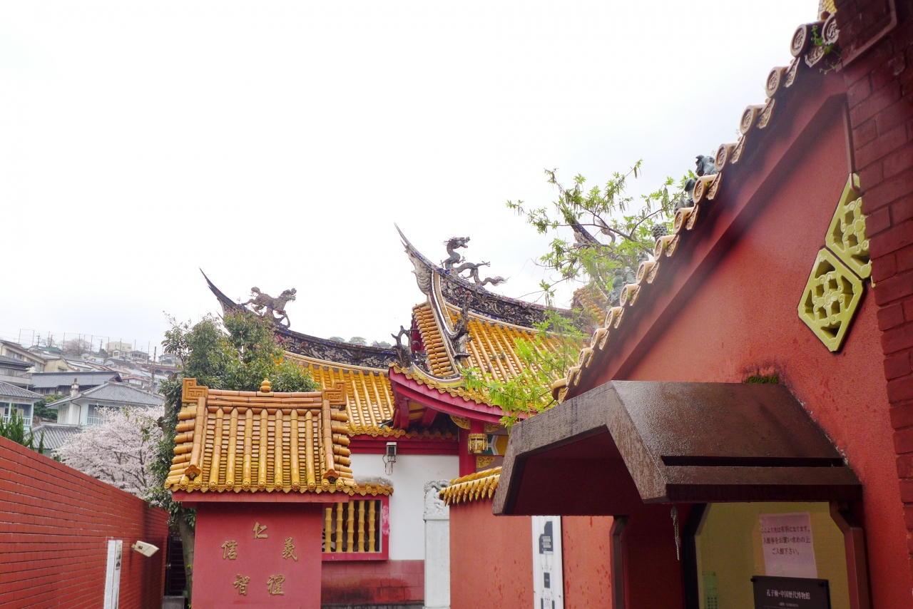 グラバー園やオランダ坂のある地域の坂の下に建っています。壮大な中華風の建物が非常に目を引きます。