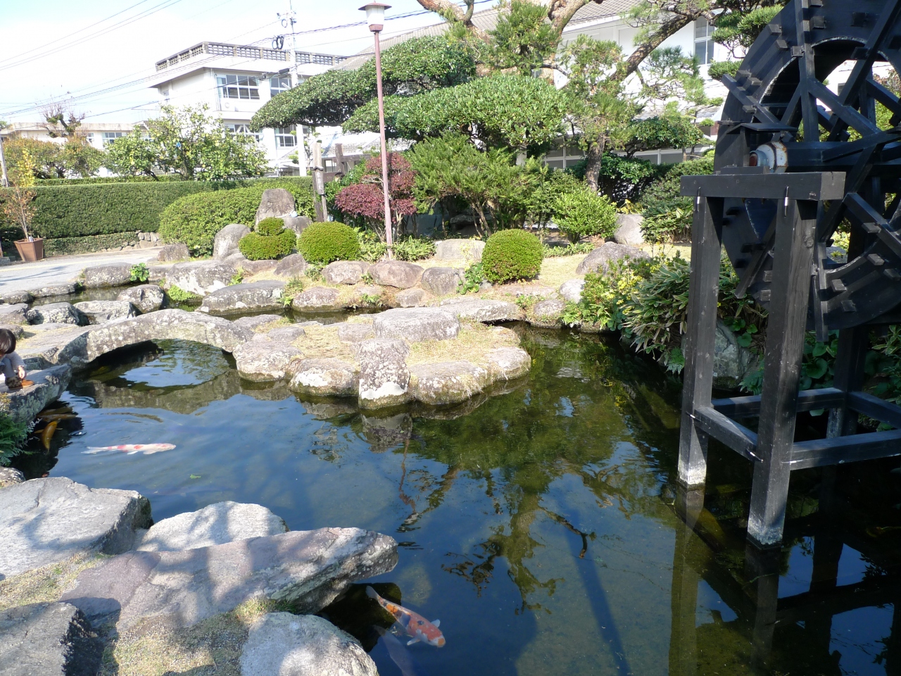 庭が綺麗で水路との調和が良い