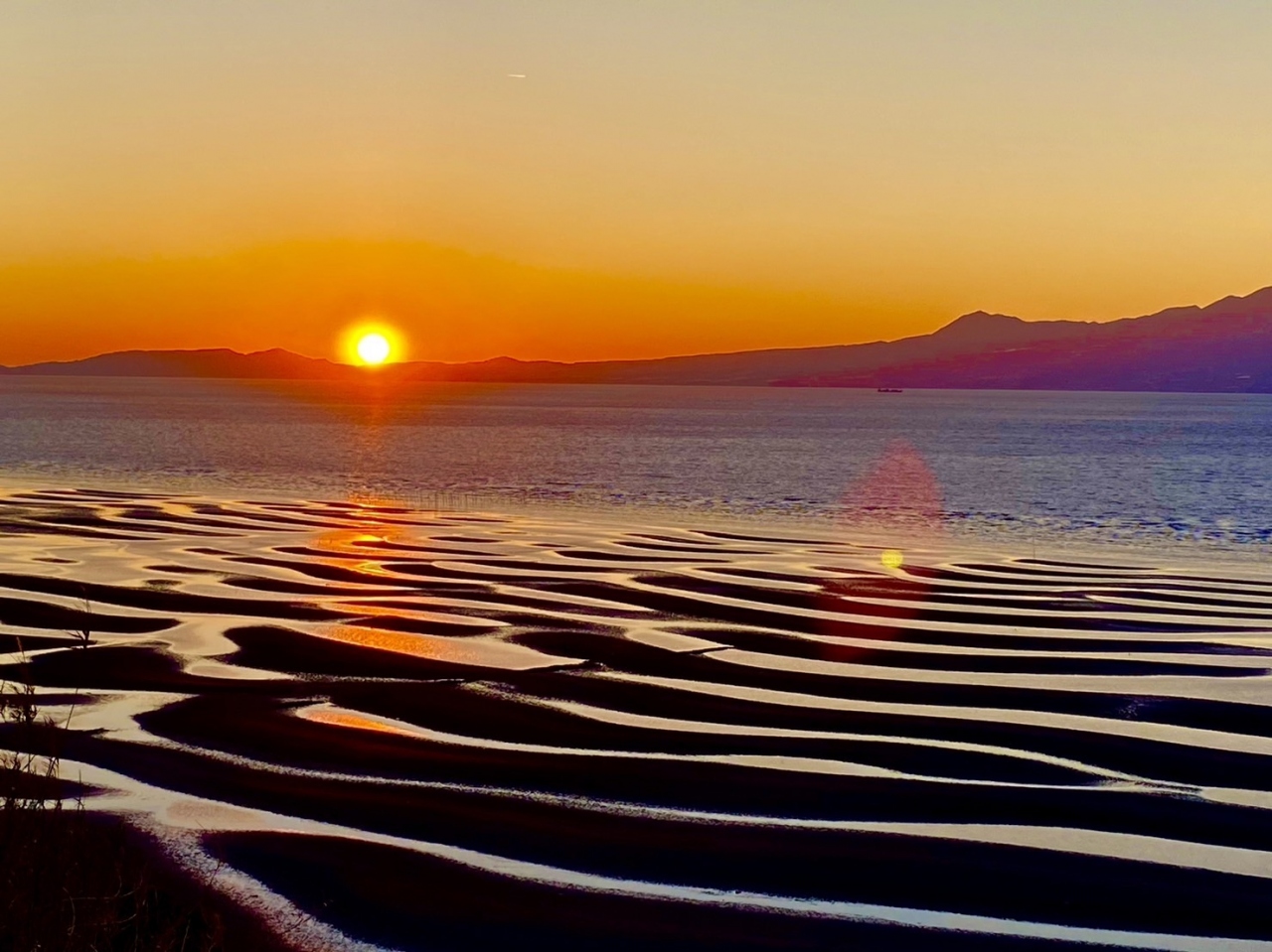 干潮の時間帯に現れる三日月型の砂紋に映った夕陽を眺めるために旅行を計画しました。干潮と日没がマッチングしないと見られないの... 続きを読むで、それに合わせて日程を組み、1ケ月前くらいにホテルなど予約しました。お天気だけは神頼み。