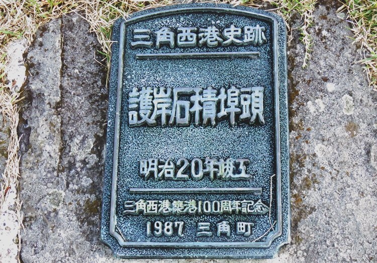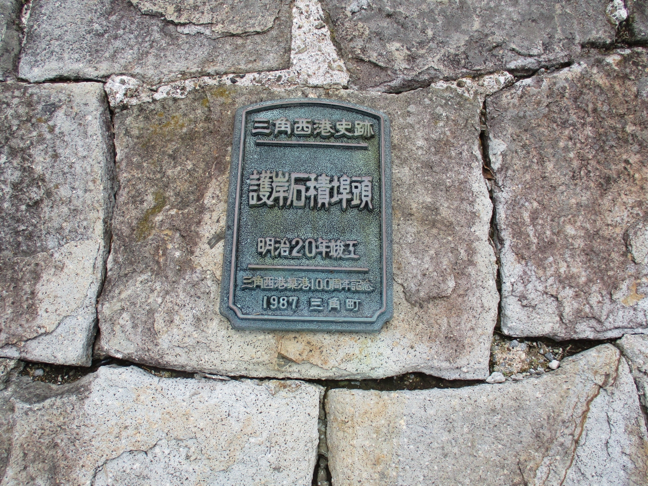 平成27年世界文化遺産に登録された「三角西港」の埠頭。オランダ人技師ムルドルが設計。大きな石材を使った西洋風切石積で、全長756mに及ぶ。明治時代の日本の近代化遺産として、現存する唯一の石積み港であり、国の重要文化財(建造物)である。