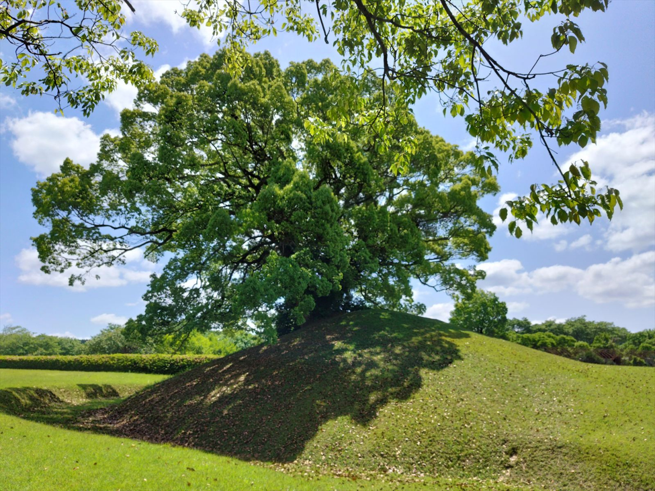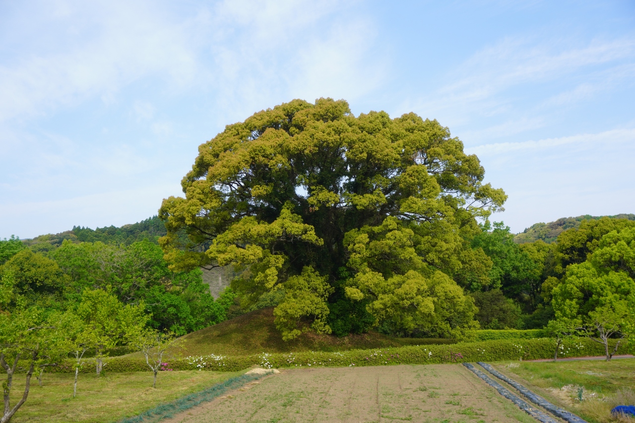 巨大な一本の楠が古墳を覆い尽くすような姿が印象的