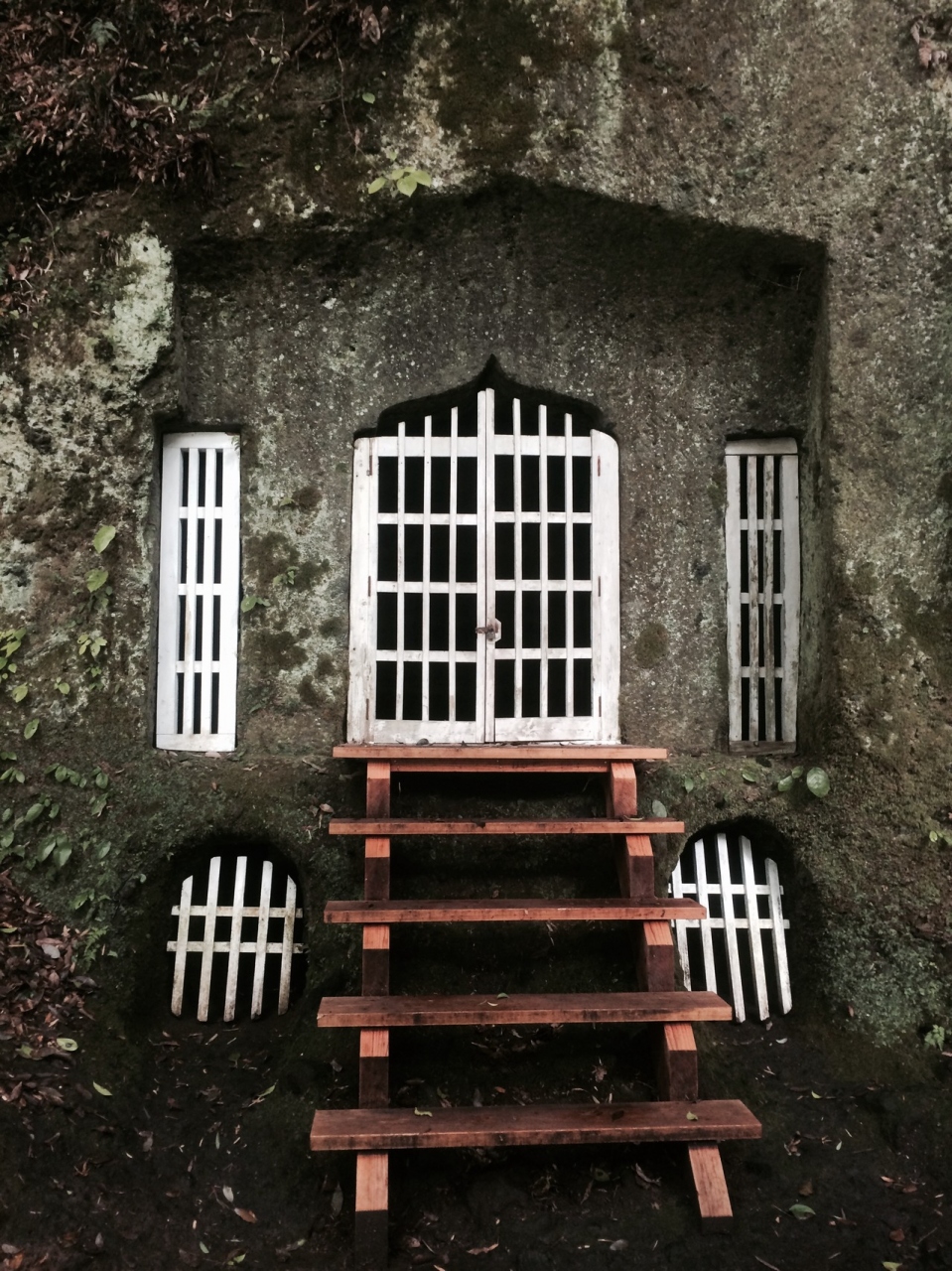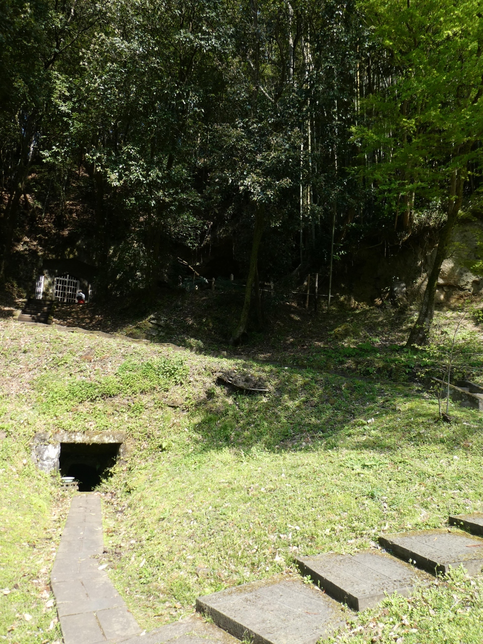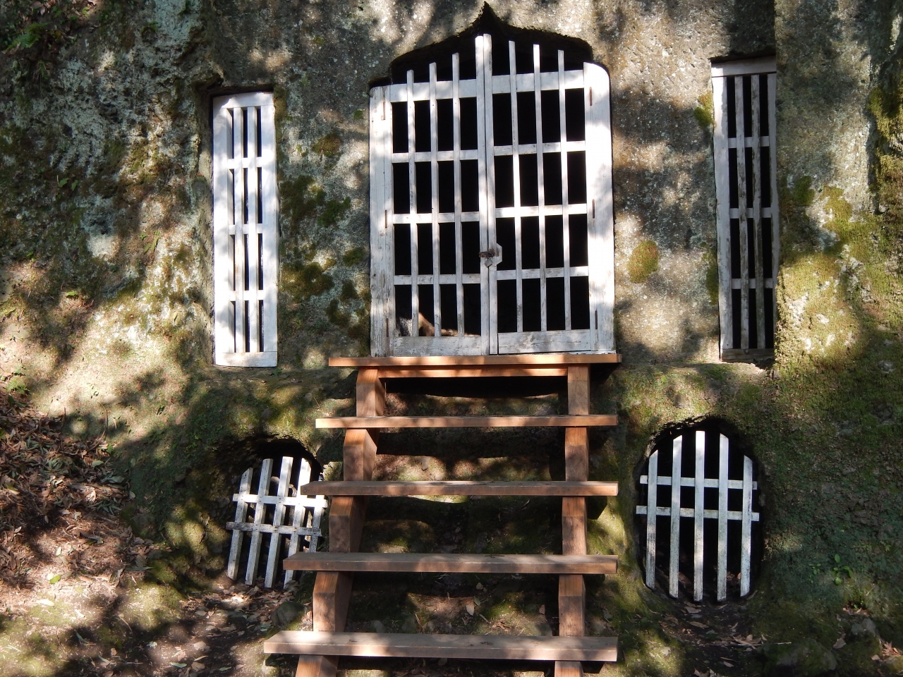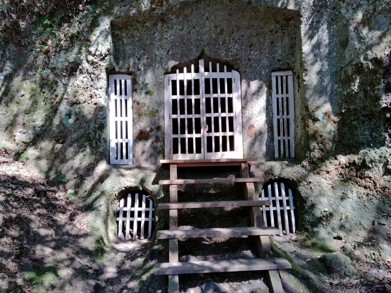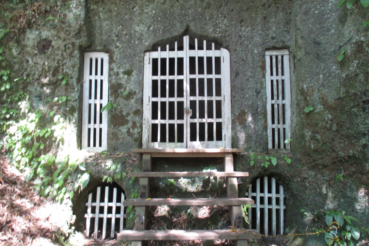 山肌の岩盤をくり抜いて作られた