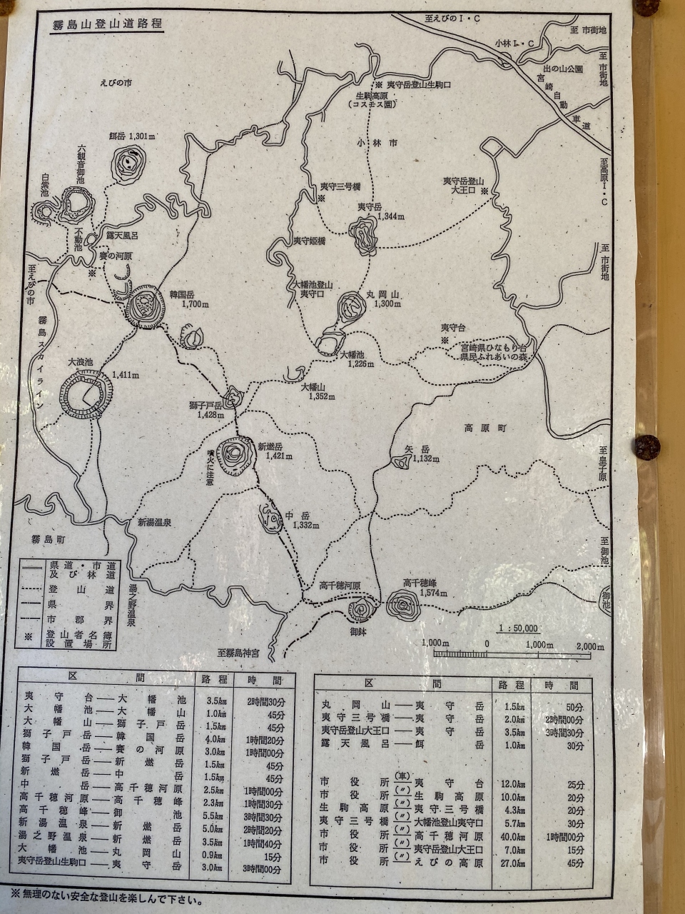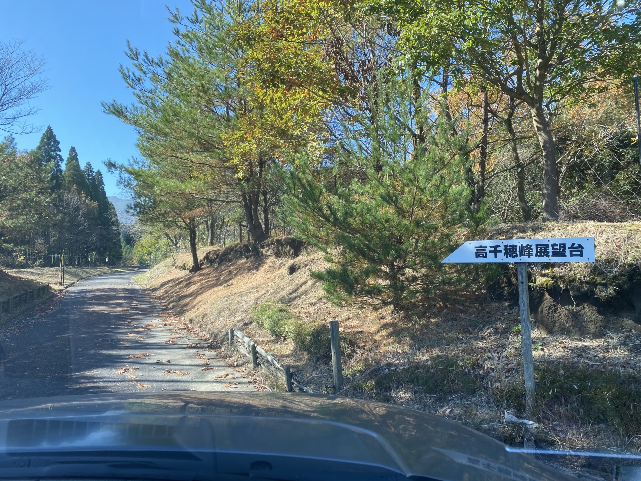 事務所で聞いて高千穂峰展望台へ向かいました。というのも、道標があったのですが、登ってきた来た道路からでは、運転手には見えない方向に立ててあリマしたので、気がつかなかったようです。メイン道路から道標の方向に進むと、ネットが張ってあるので、自分で外して車を通したら再度張って置くようにとのことでした。