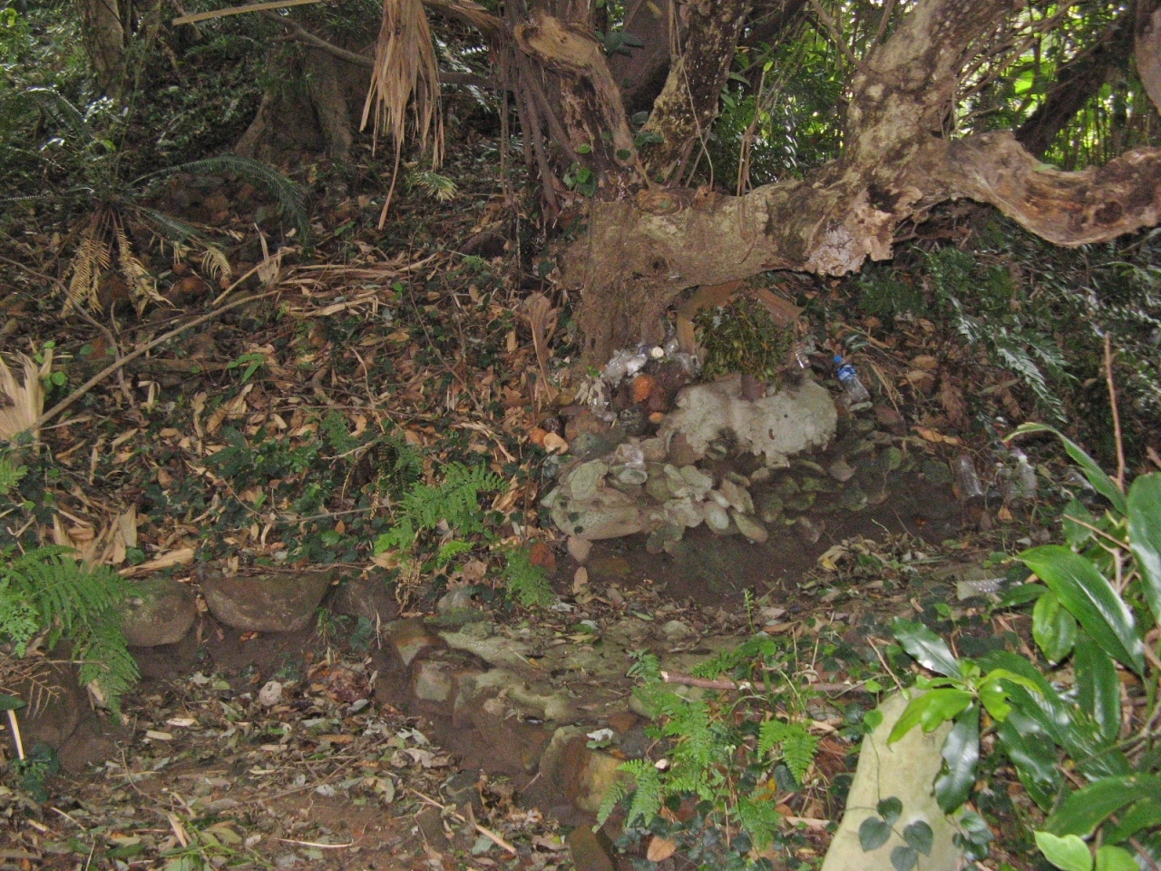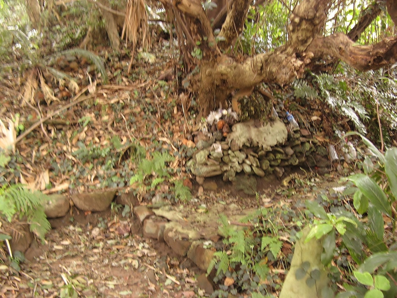 窯跡は草木が茂り、登り窯があったとは思われないほど鬱蒼としたところで、よく見ると小さな素焼きの祠が祀られており花が供えられていました。