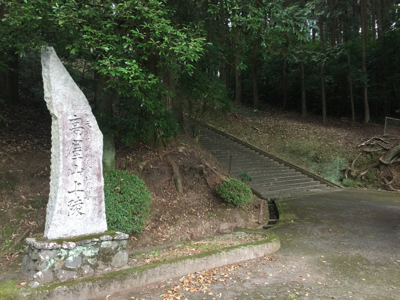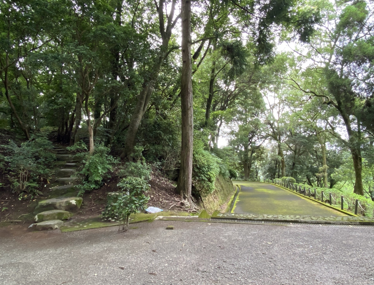 鹿児島空港からだと504号線を走り高速道路を交差して進むと「上床公園」の看板が左手にあり、そのすぐ先に「高屋山上陵」の青い... 続きを読む案内看板があるので右折して登って行くと、左に駐車スペースがあったのでそこに車を止めました。空き地の先にも道路は続きますが、途中で車止めがあるのでそこまで進むとUターンができず、バックで戻ることになります。
