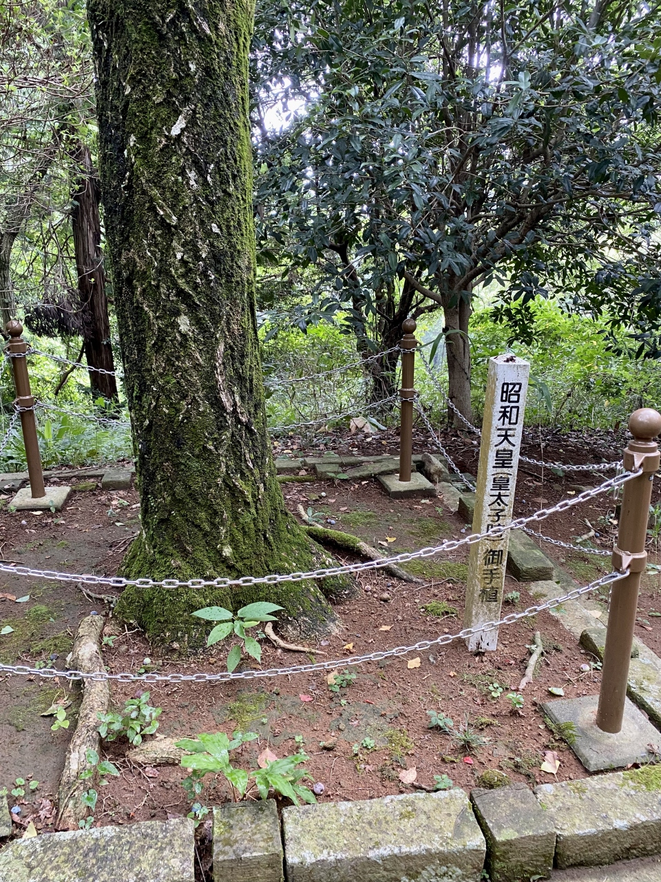 拝所と反対側の小山に石段があるので登ってみると、高屋山上陵の解説板がありました。石碑もあり、東宮殿下御参陵記念碑となっていました。昭和天皇が皇太子時代に参陵されたようです。その時に植樹された記念の木もありました。