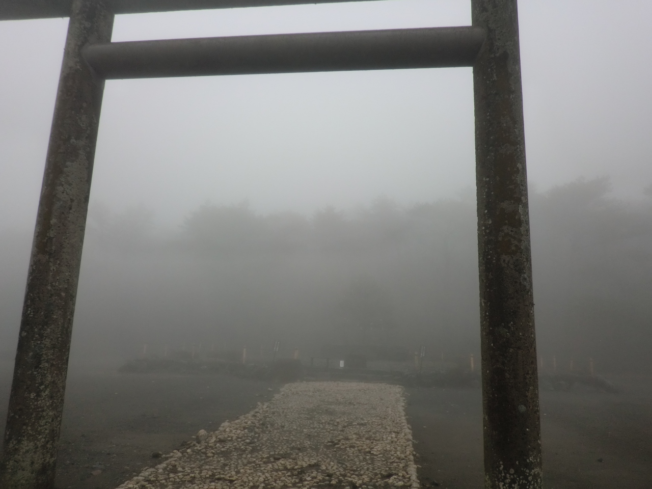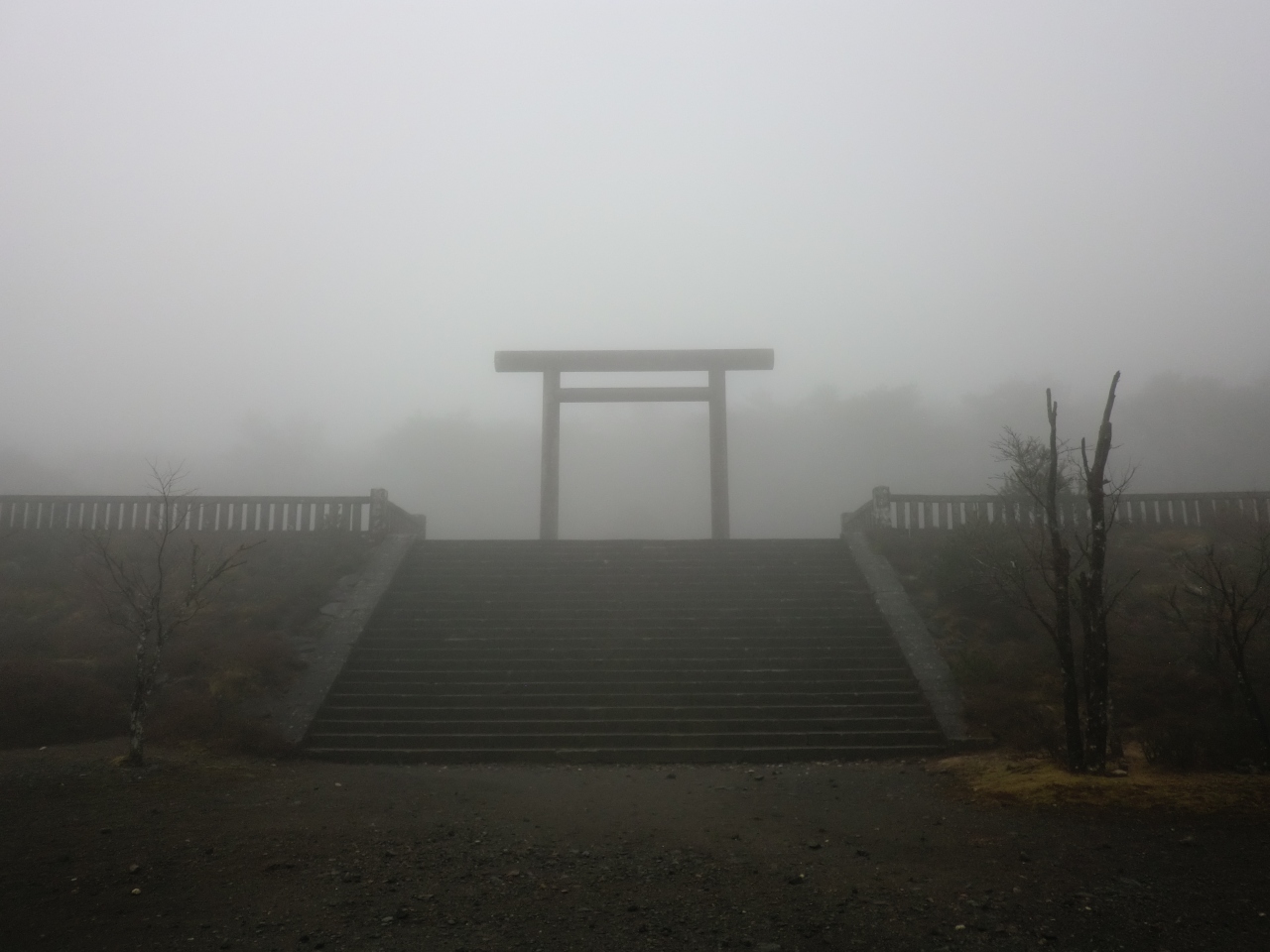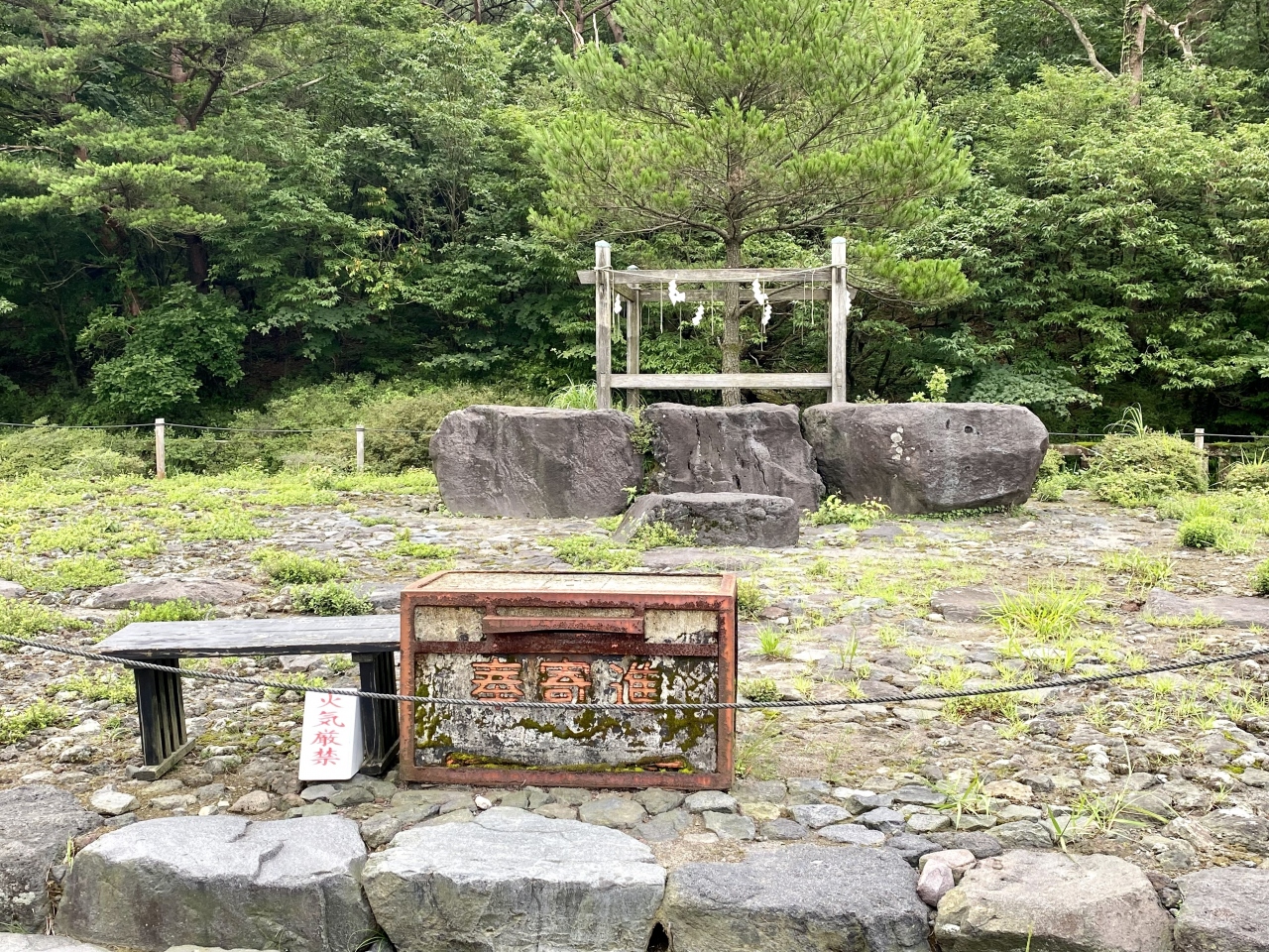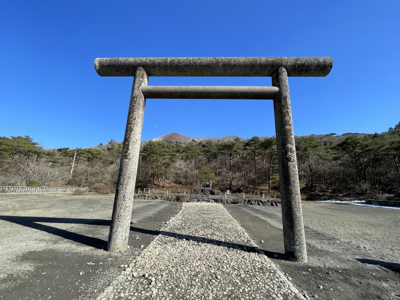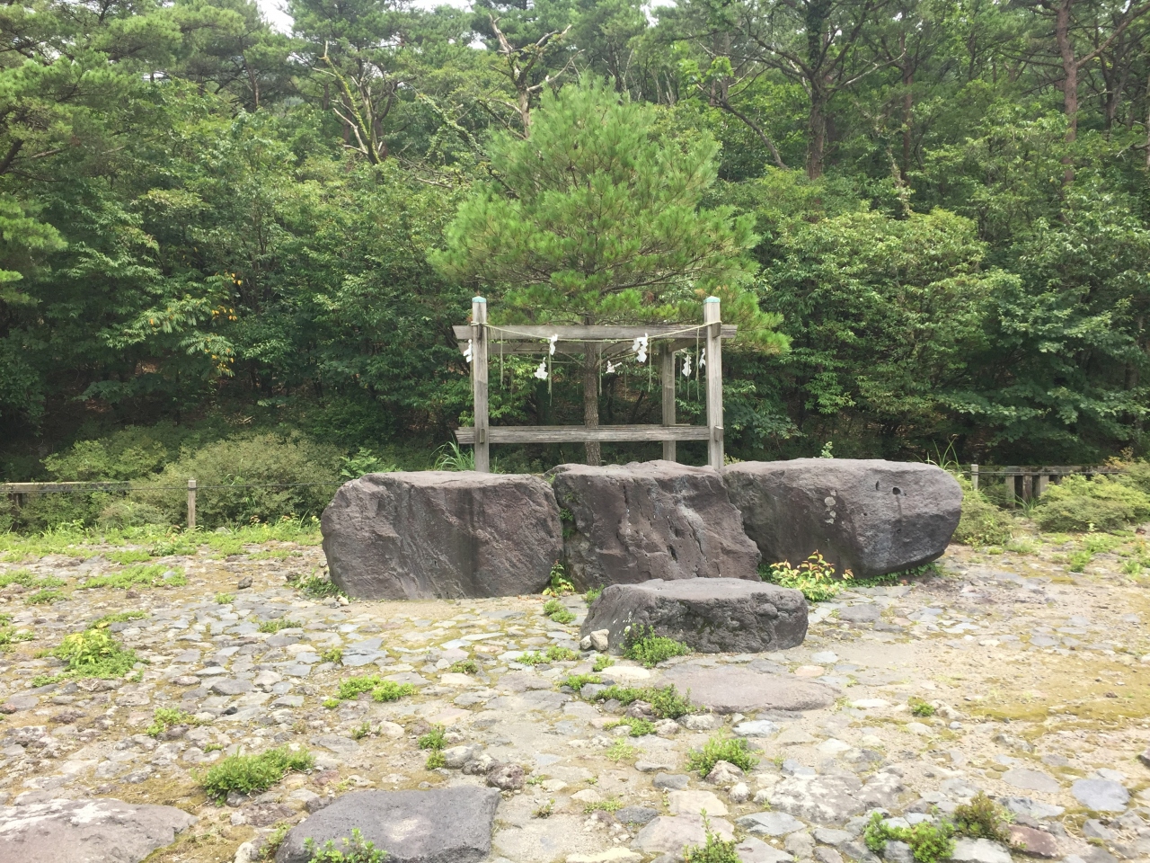 鳥居の背後には御鉢が控えており、神々しくもありました。注連縄で木が一本守られているだけですが、近寄りがたい雰囲気を醸し出しています。現在でも、この地で祭祀は継続されており、11月には天孫降臨御神火祭が斎行されているとのこと。 閉じる投稿日:2020/11/27