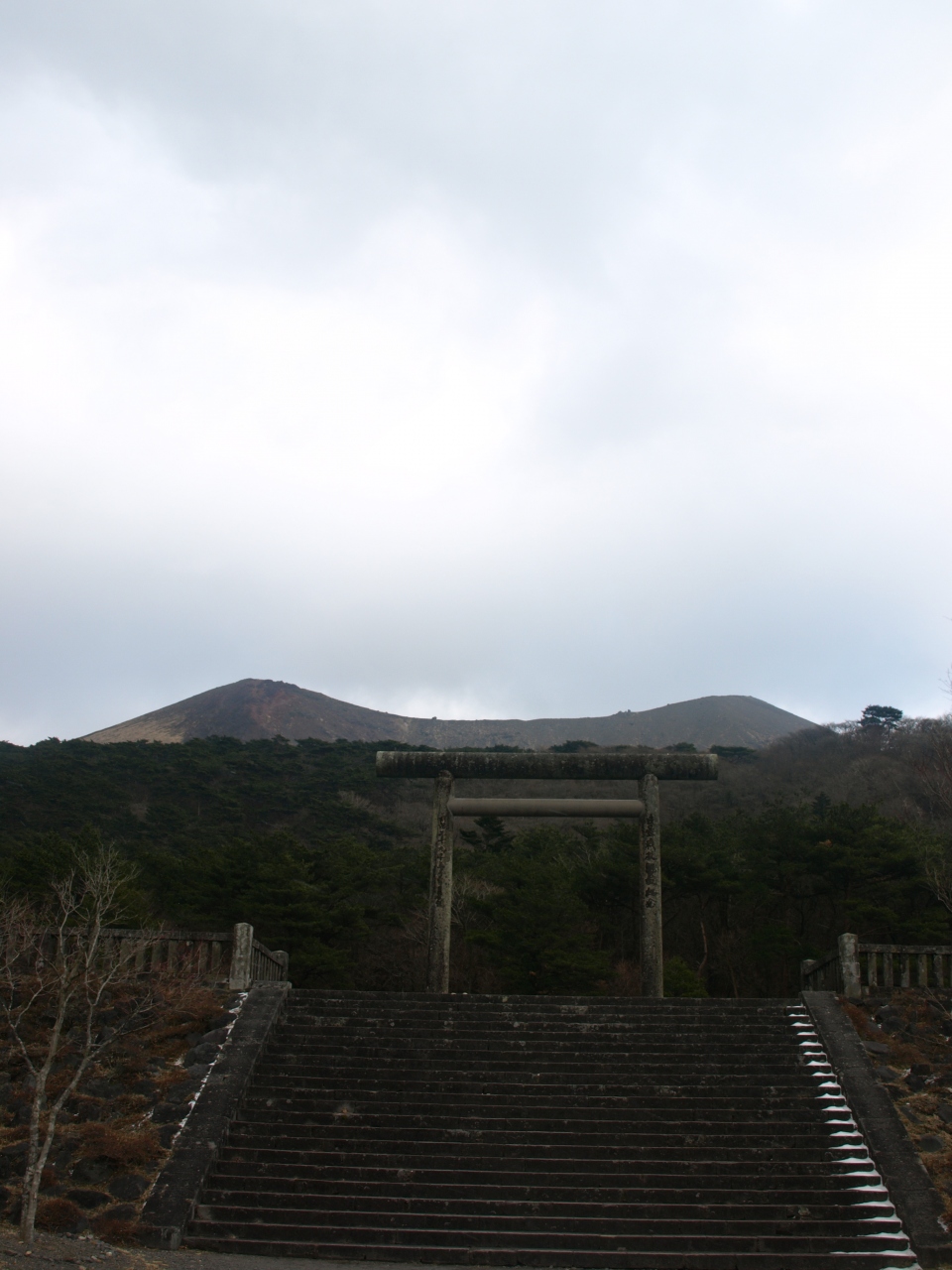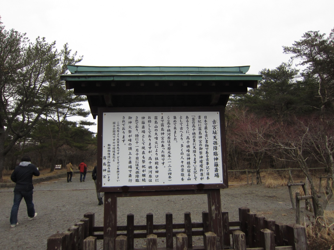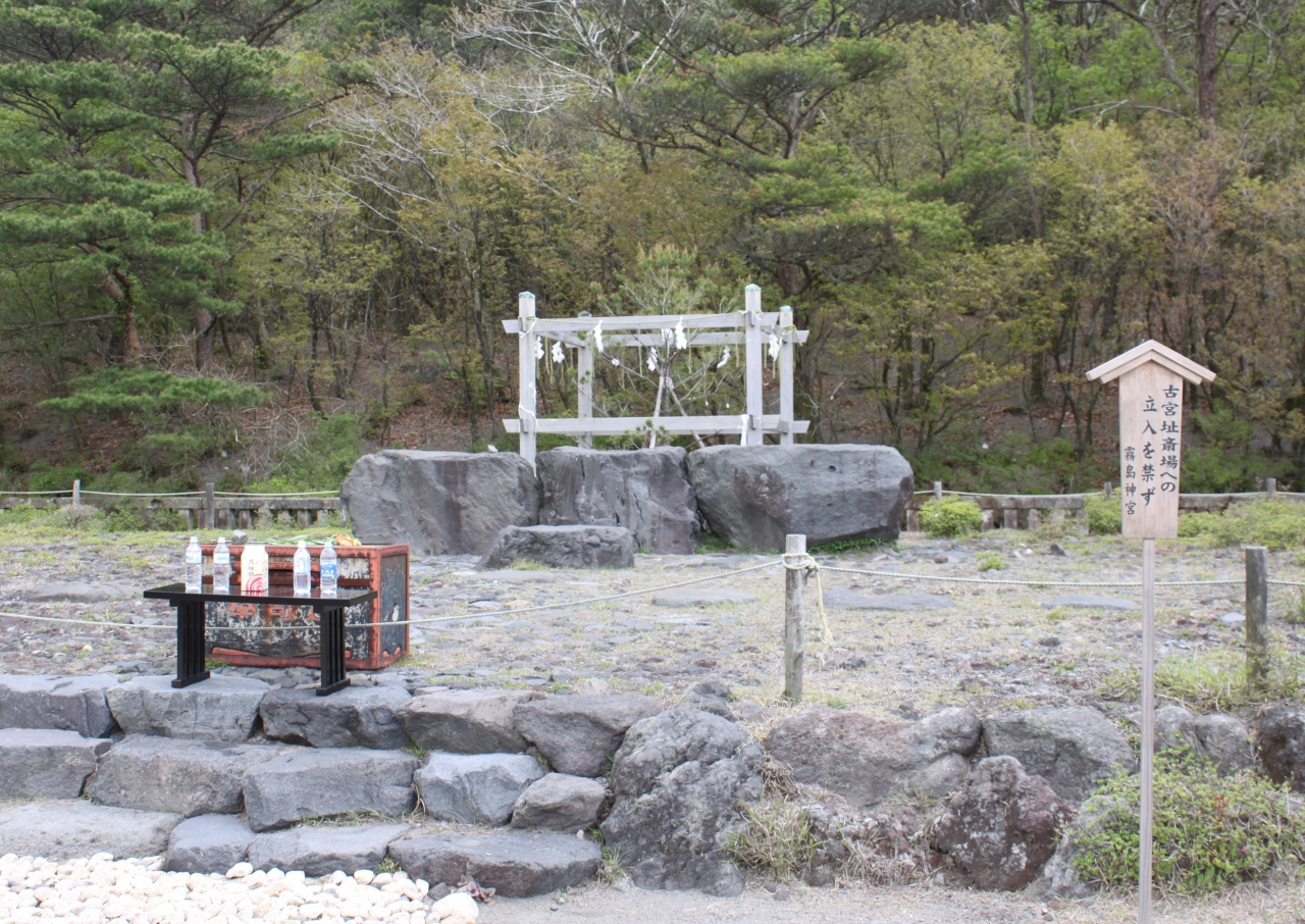 霧島山の山麓にある霧島神宮は、以前は高千穂峰の山頂直下にあったのですが、火口のすぐ近くにあるため重なる噴火で焼失、平安時代... 続きを読むには現在の高千穂河原に移転、しかし、ここも1234年焼失、1484年に車で15分ほど下った現在の場所に再建されました。この高千穂河原に神宮があった場所は現在古宮址とよばれ社殿などはありませんが、鳥居と、かつての参道ときれいに整備された社殿跡があります。現在のうっそうとした森の中にある霧島神宮も雰囲気がありますが、高千穂峰を見上げることのできるこの場所の方が私は好きです。高千穂河原ビジターセンターのある駐車場から500mほどなので気軽に訪れることができます。