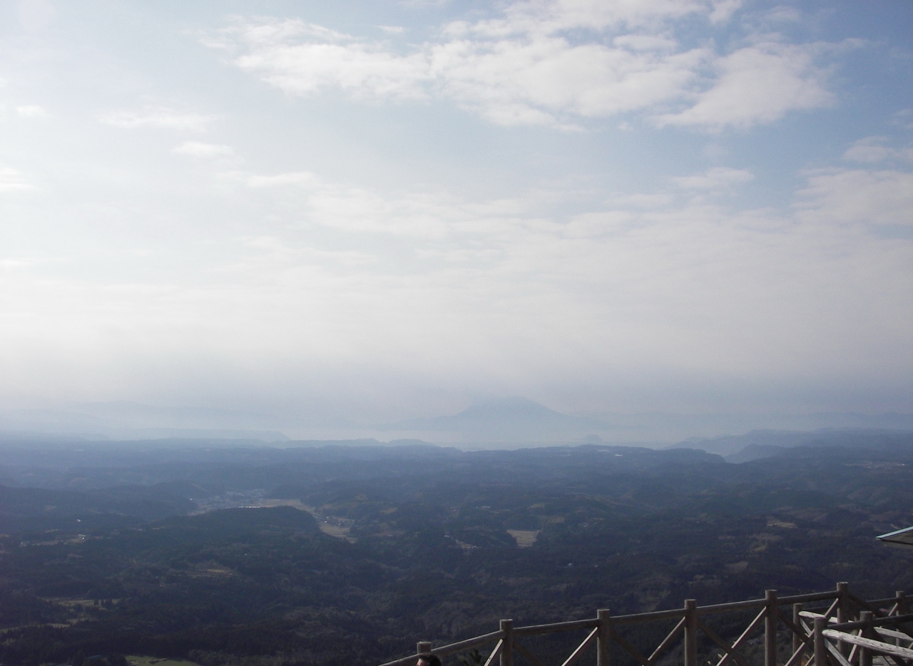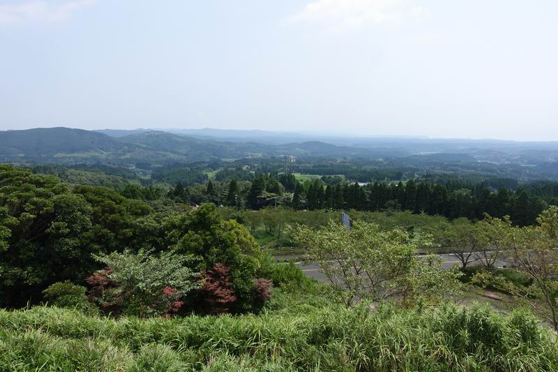 展望台からの景色は広々とすばらしく、猛暑の中でも涼しい風が吹いていました。残念ながら快晴ではなかったので、桜島などは見えませんでした。それでも十分きれいでした。