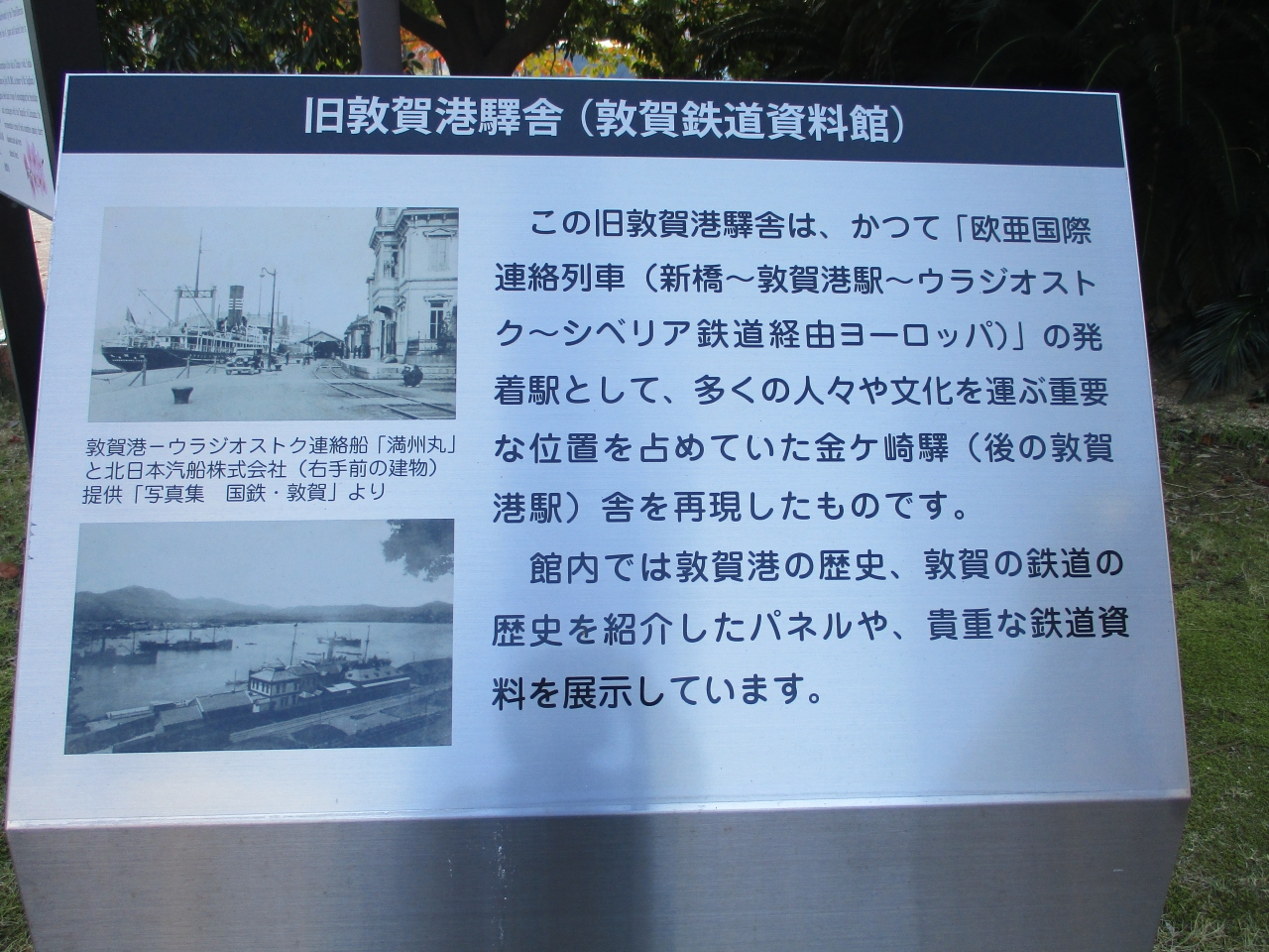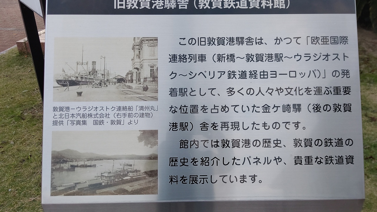明治時代に欧亜国際連絡列車の運行が始まり、東京⇔敦賀を直通列車で、敦賀港⇔ロシアのウラジオストクは連絡船で、そこからシベリア鉄道でフランス・パリまで行くという路線が確立されたそうです。 その時代は、敦賀がヨーロッパ大陸に行くための玄関口だったんですね。