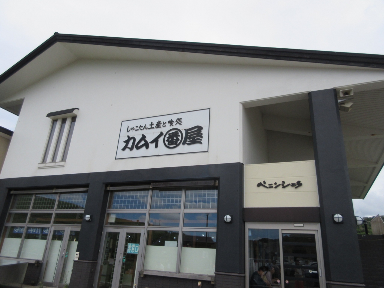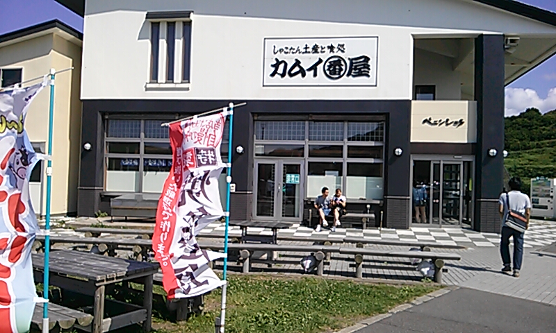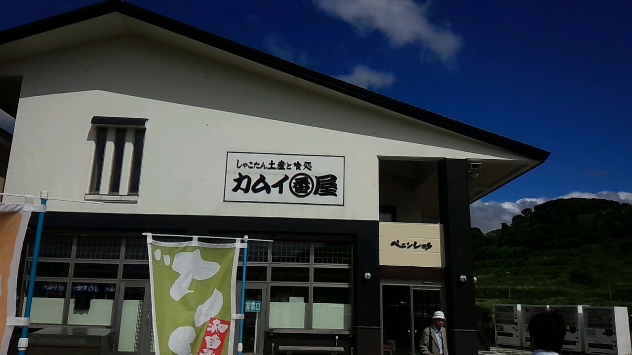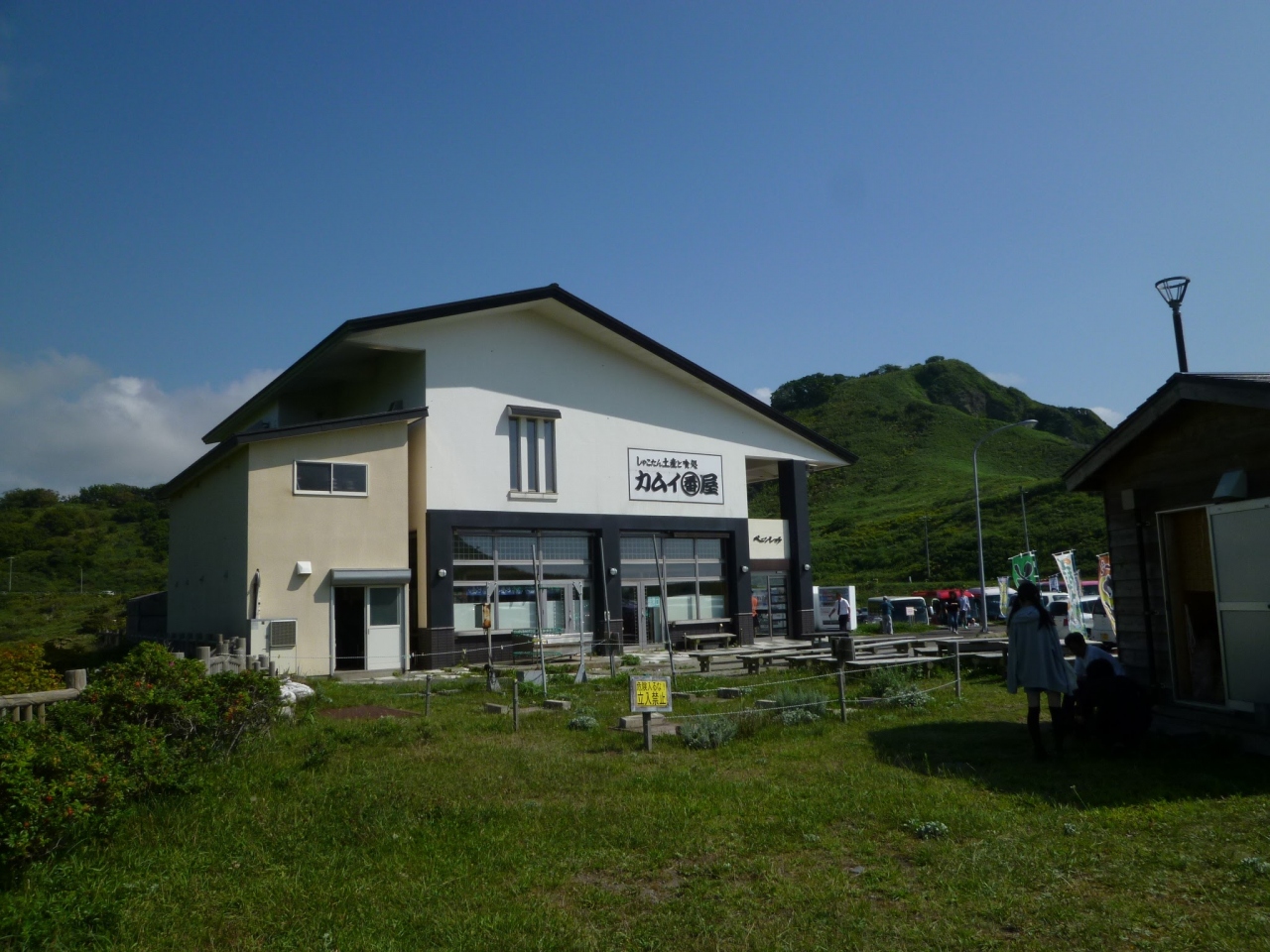 神威岬の駐車場、遊歩道の入口に立つお土産屋、兼食堂です。10時から17時。また食堂は11時からと、営業時間が短くちょっと不... 続きを読む便な気もしますが(更に5~9月の夏季しか営業していない)、ここではぜひ、積丹の海と空の青を映したしゃこたんブルーソフト(¥300円)をためしたいところ。しゃこたんブルーラムネ(¥250円)もこの店限定のオリジナル商品だそうです。店の外の小屋でもソフトを販売しています。食堂ではここでも生うに丼が食べられるほか、シーフードカレーやにしんそば、いか焼きなど、各種メニューがあります。120名収容ということで、ツアーの予約席などもキープされていました。お土産は各種海産物加工品のほか、神威岬を銘打った地酒、神威岬・積丹のステッカー、そして積丹ブルーアイス・ジェラートなどが売られていました。アイスは解けてしまいそうなので、食堂などで食べるとよいと思います。神威岬、積丹のお土産が各種ここで揃うのではないでしょうか。 閉じる