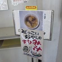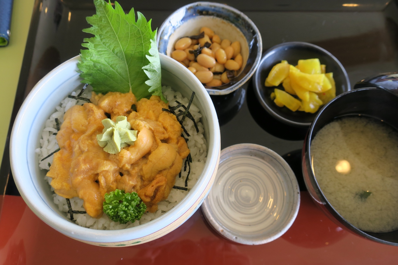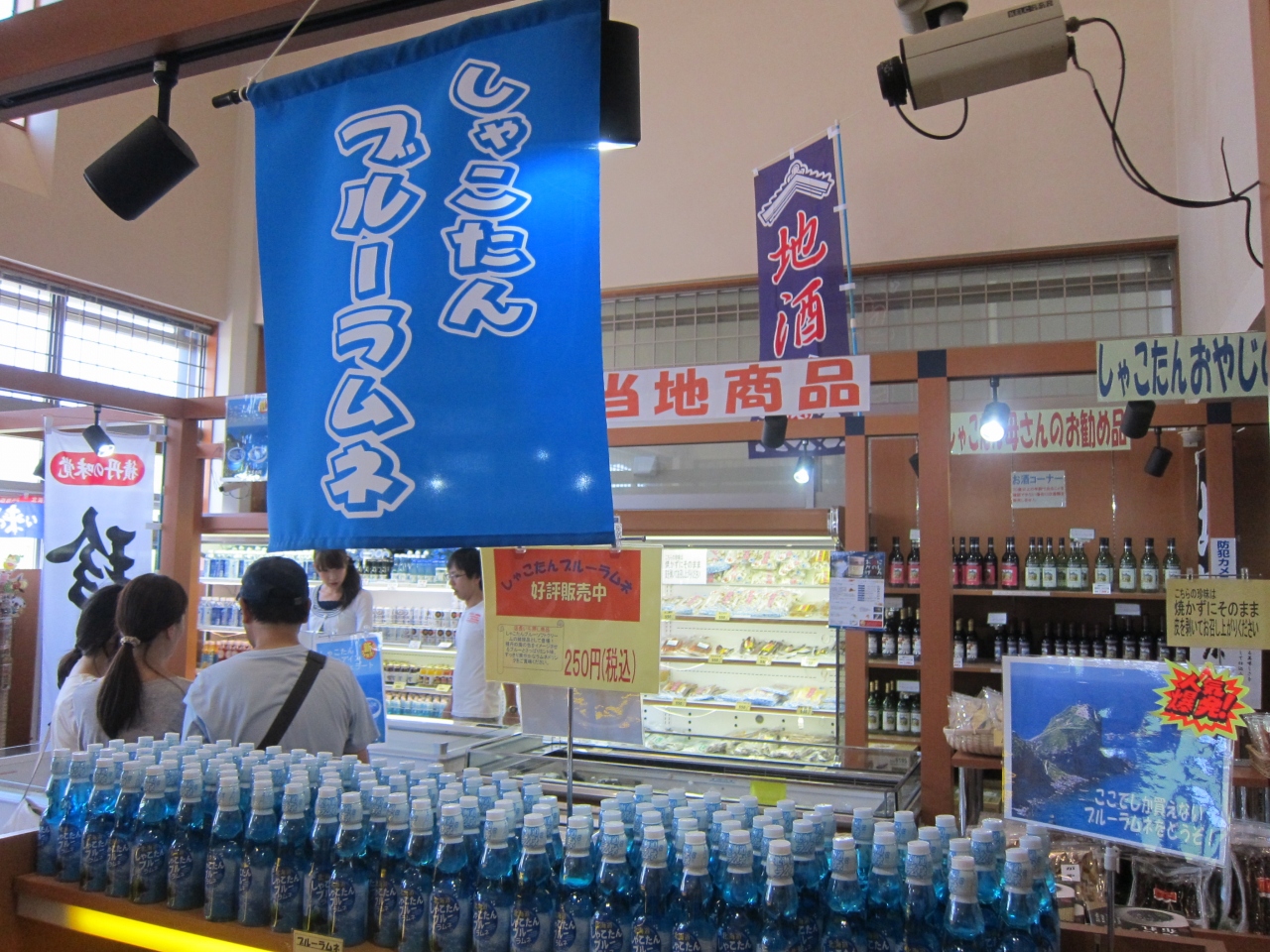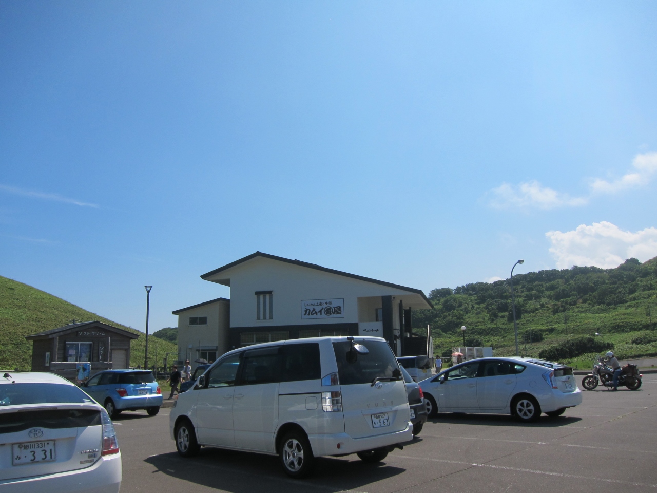 神威岬の駐車場、遊歩道の入口に立つお土産屋、兼食堂です。10時から17時。また食堂は11時からと、営業時間が短くちょっと不... 続きを読む便な気もしますが(更に5~9月の夏季しか営業していない)、ここではぜひ、積丹の海と空の青を映したしゃこたんブルーソフト(¥300円)をためしたいところ。しゃこたんブルーラムネ(¥250円)もこの店限定のオリジナル商品だそうです。店の外の小屋でもソフトを販売しています。食堂ではここでも生うに丼が食べられるほか、シーフードカレーやにしんそば、いか焼きなど、各種メニューがあります。120名収容ということで、ツアーの予約席などもキープされていました。お土産は各種海産物加工品のほか、神威岬を銘打った地酒、神威岬・積丹のステッカー、そして積丹ブルーアイス・ジェラートなどが売られていました。アイスは解けてしまいそうなので、食堂などで食べるとよいと思います。神威岬、積丹のお土産が各種ここで揃うのではないでしょうか。 閉じる