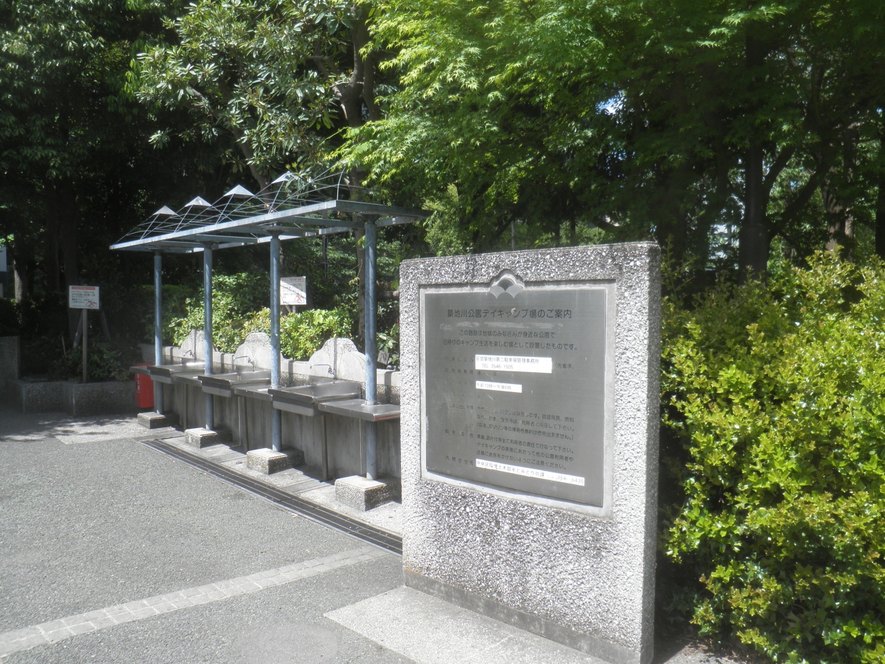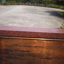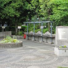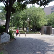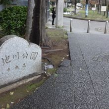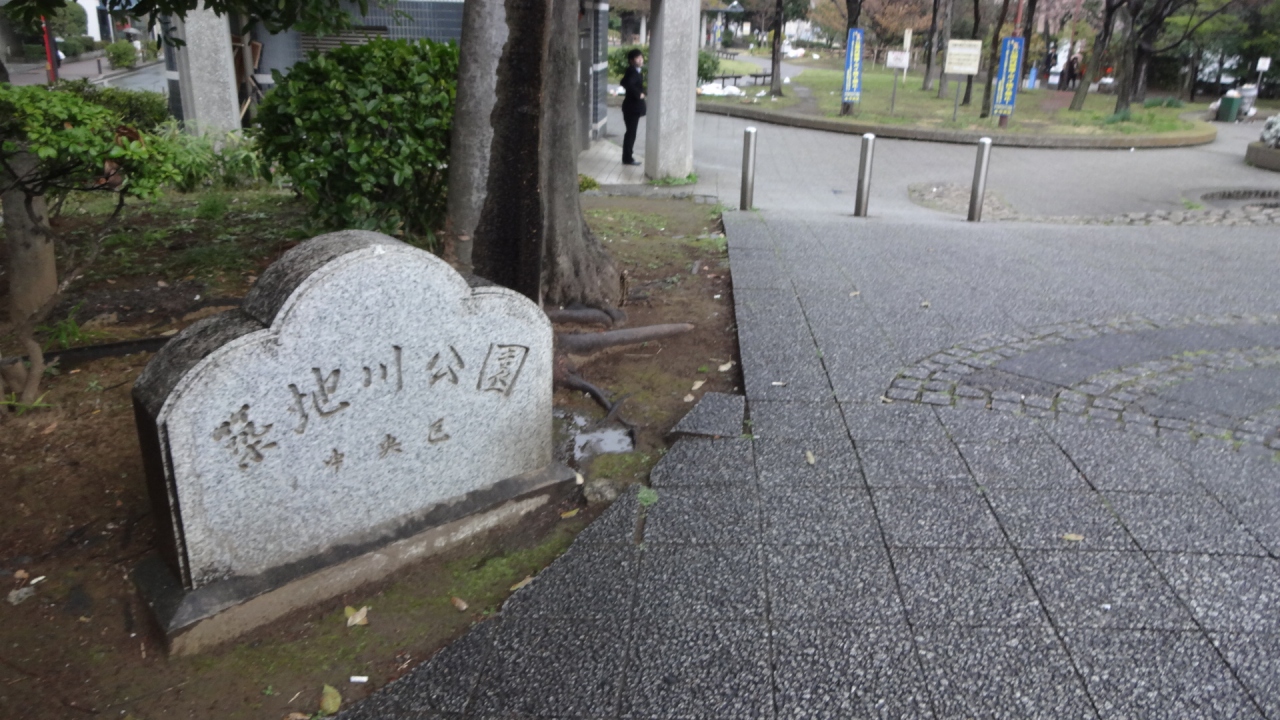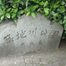 築地川公園の標識です。公園の中に置かれている石製の標識です。