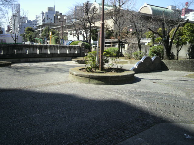 備前橋の名残です。橋の下の築地川は、埋め立てられています。