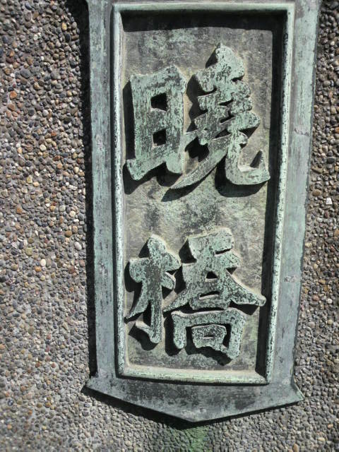 築地川公園の築地川の流れに架かっていた暁橋の親柱の標示です。