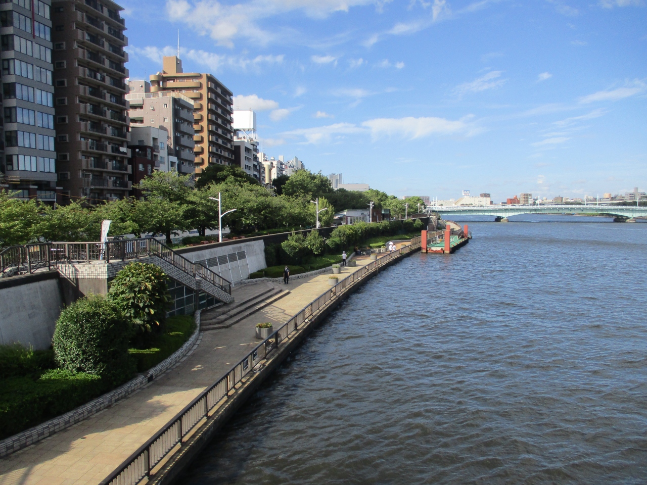浅草と荒川で隅田川に分かれる分岐点の間は、一般家屋・マンションも大い