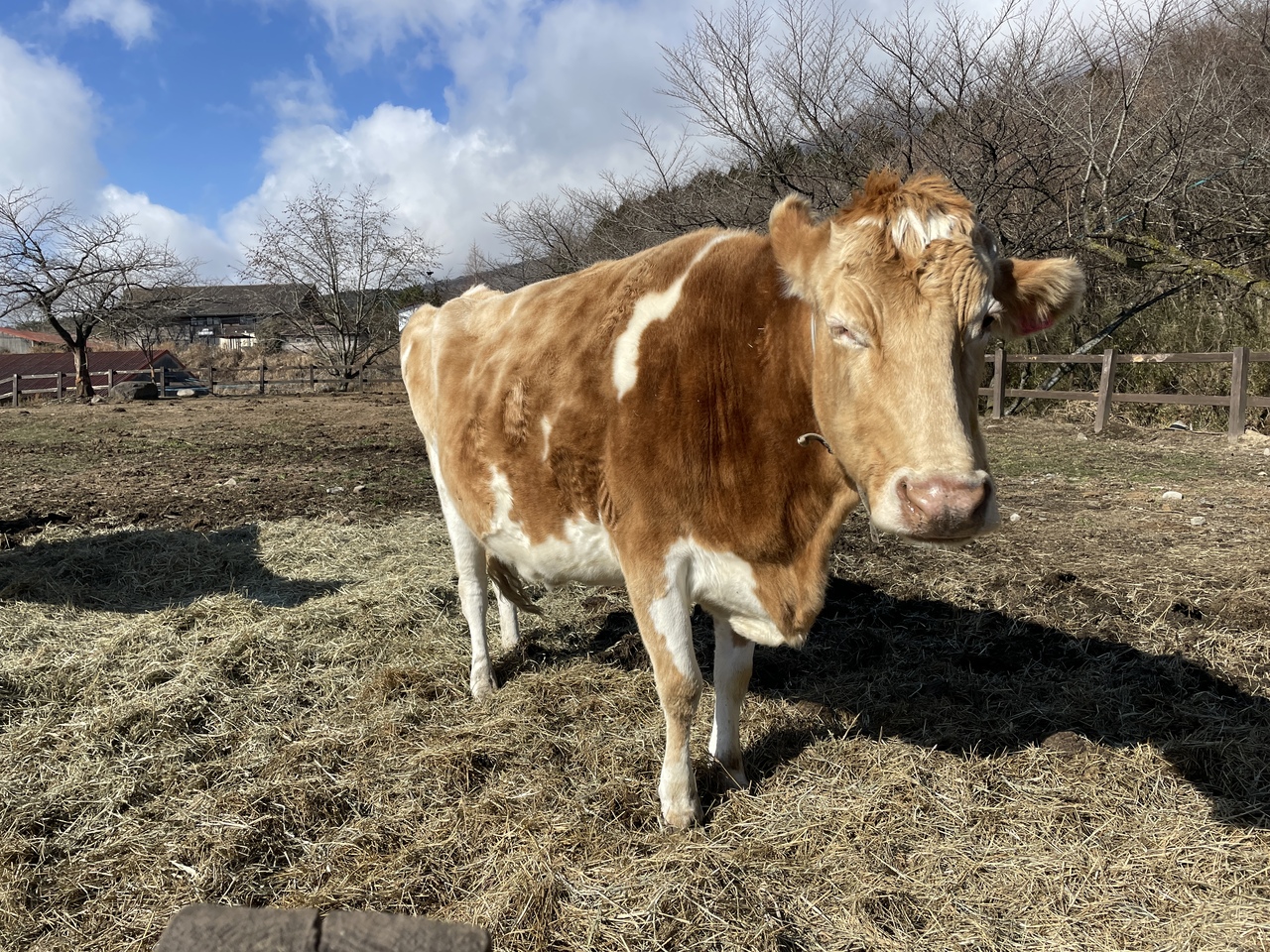 ガンジー牛と触れ合える牧場。