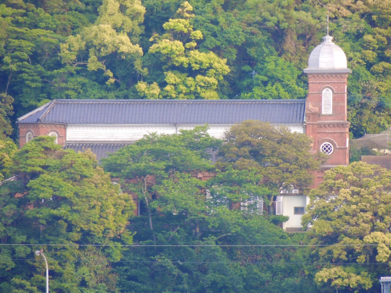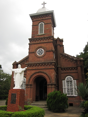 八角形ドーム型の鐘楼をもつ赤煉瓦の教会