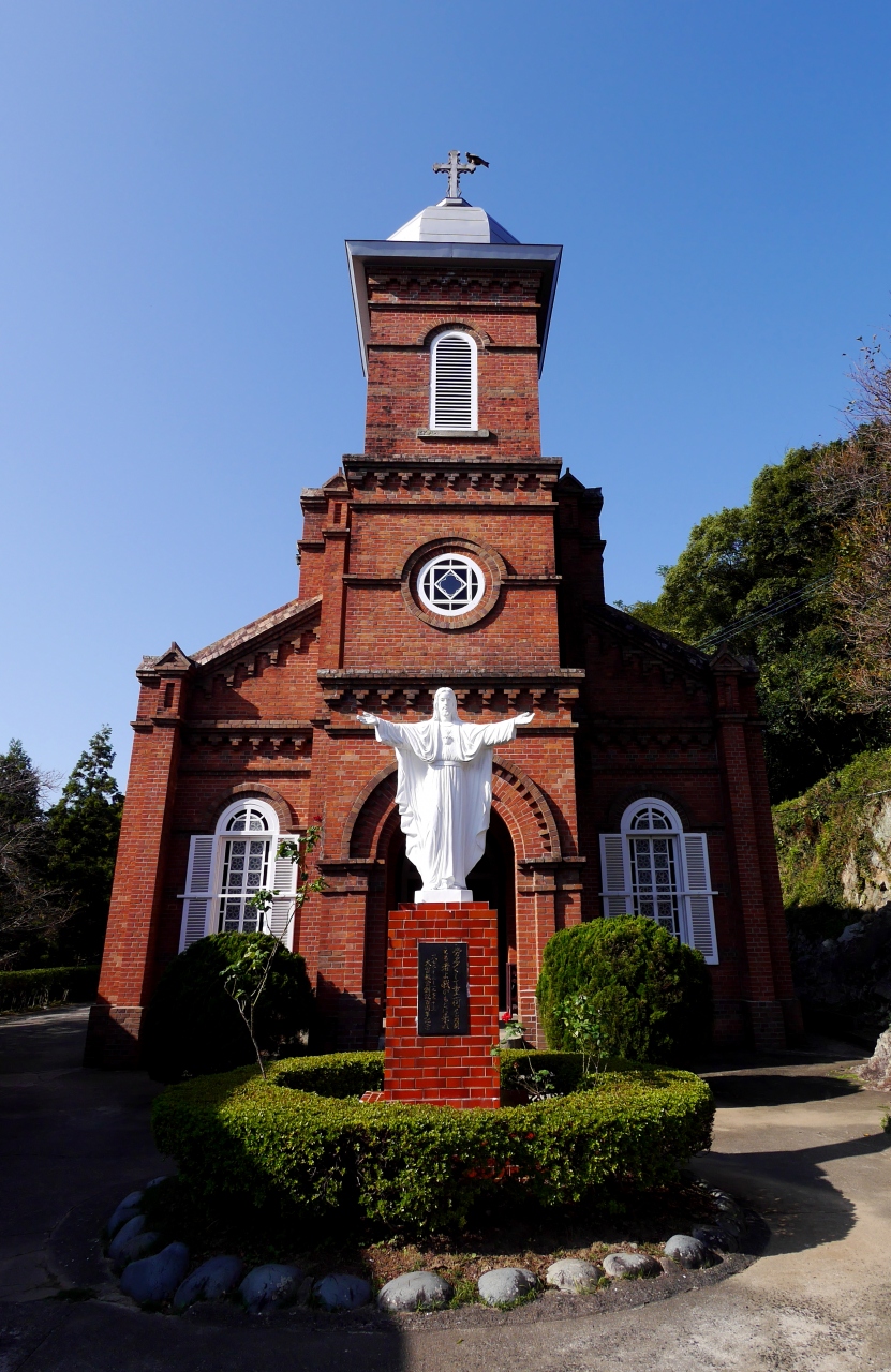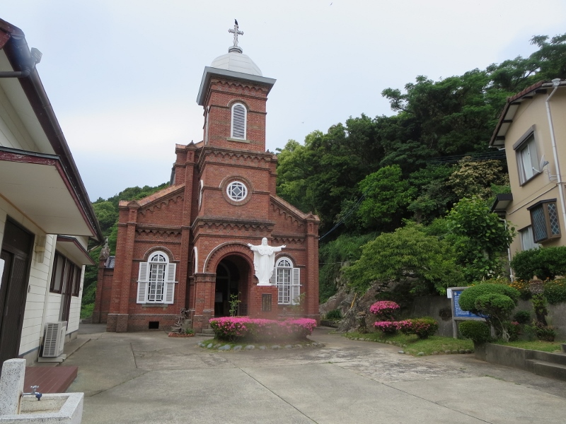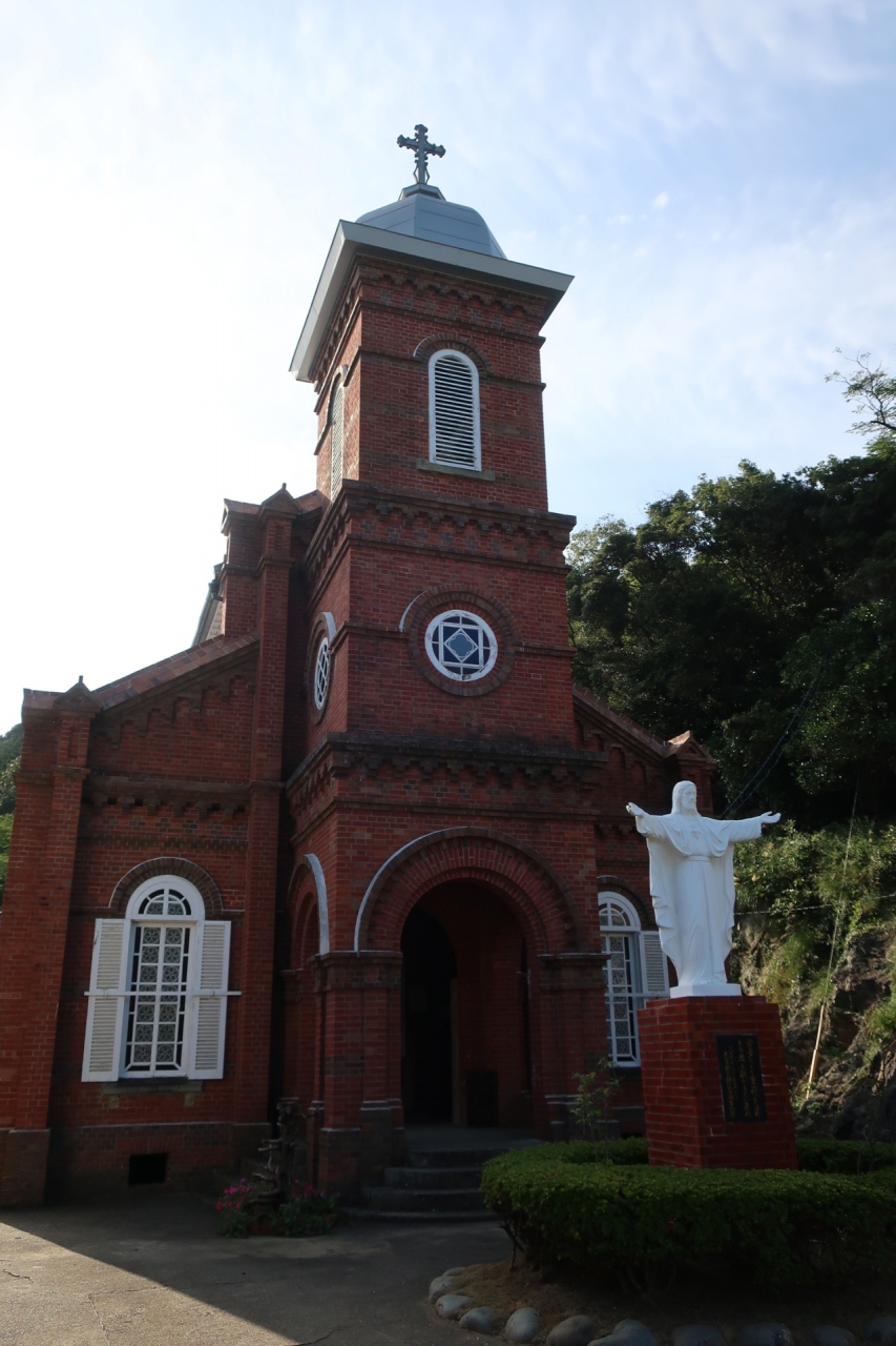 八角形のドーム鐘楼がある上五島を代表する煉瓦造り教会のひとつ