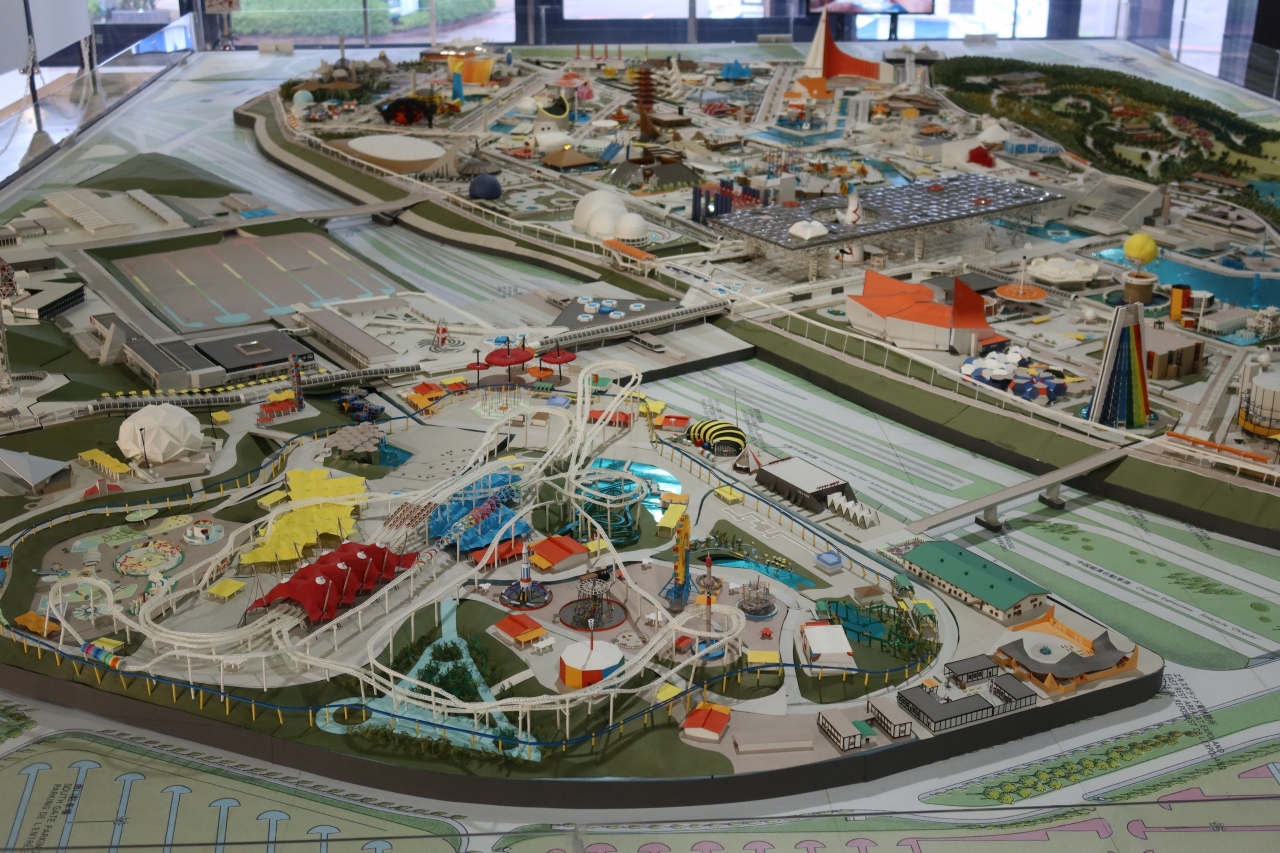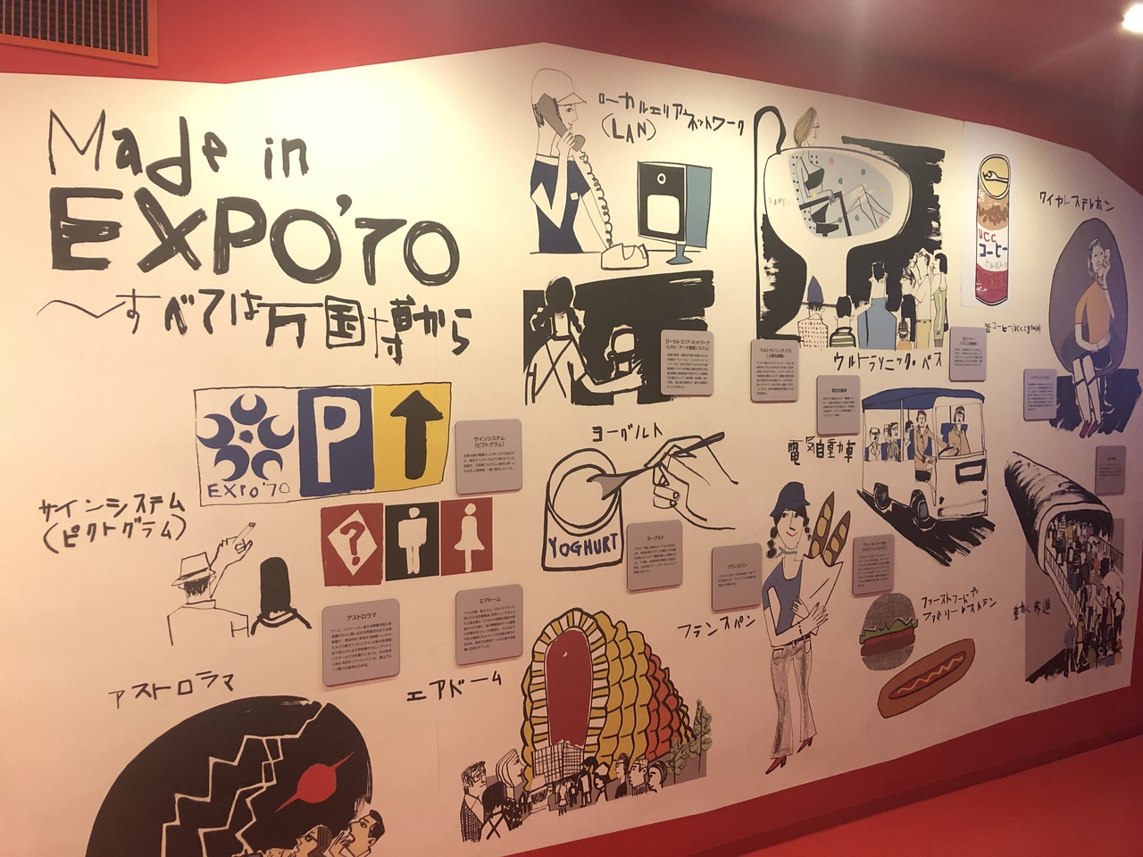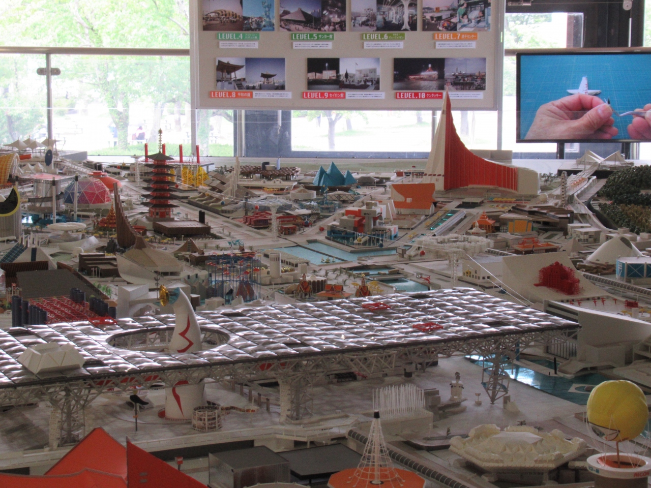 2Fには常設展があり、当時の資料、コンパニオンの衣装、ジオラマ、岡本太郎の作品と映像、ポスターなど、当時の物が多く展示されています。