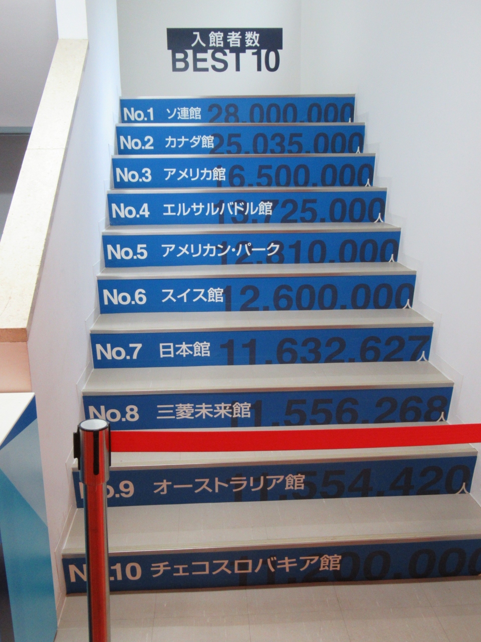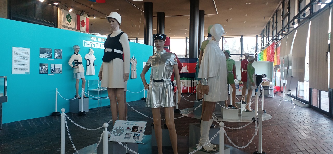 当時のパビリオンやユニフォーム、また入場者数や参加国について等々な展示があり、当時足しげく通った夫はとても懐かしがっていました。
