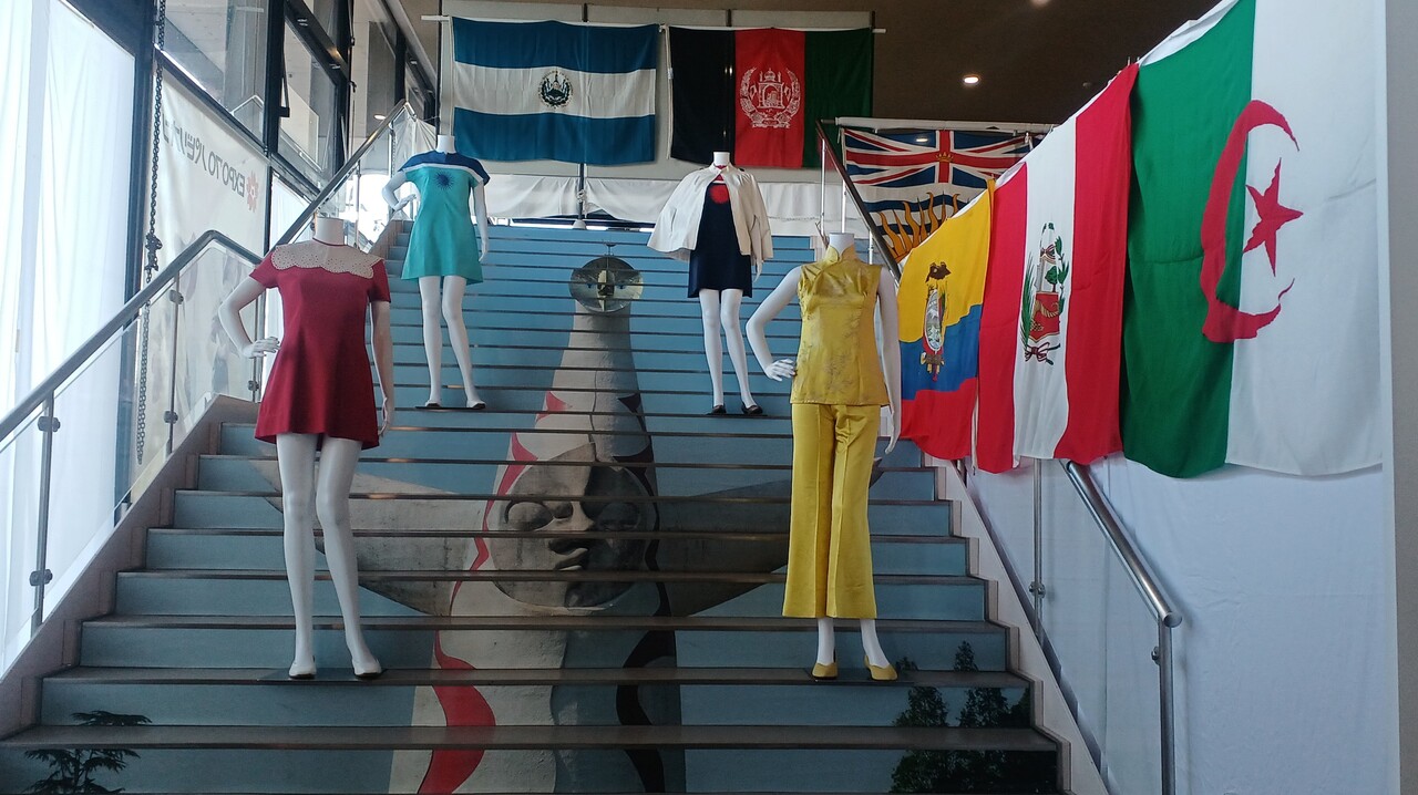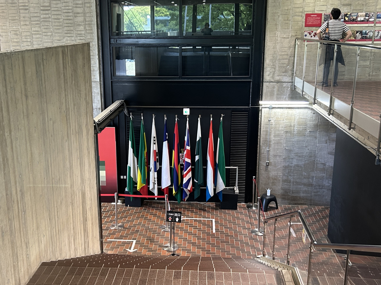 チケットを購入して様々な国の国旗が並んだところを通って2階に上がって行きました。
