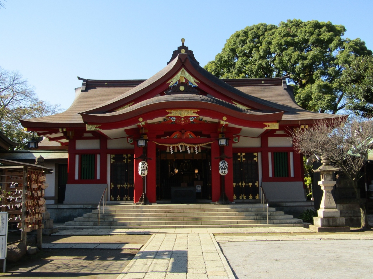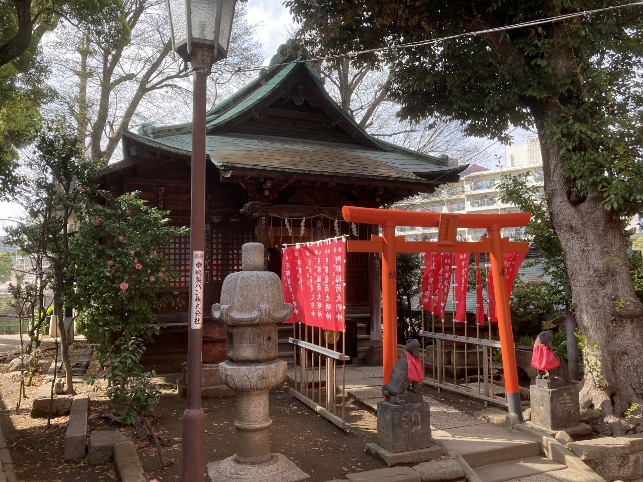 The shrine is located on a small hill near Shinbamba station. If you take the Keikyu line and look out the window on the west side of the train, you will surely see it. It is not a particularly gorgeous shrine, and because it is surrounded by residential areas, there are not many worshippers except during the New Year's visit and festivals, and it is quiet.