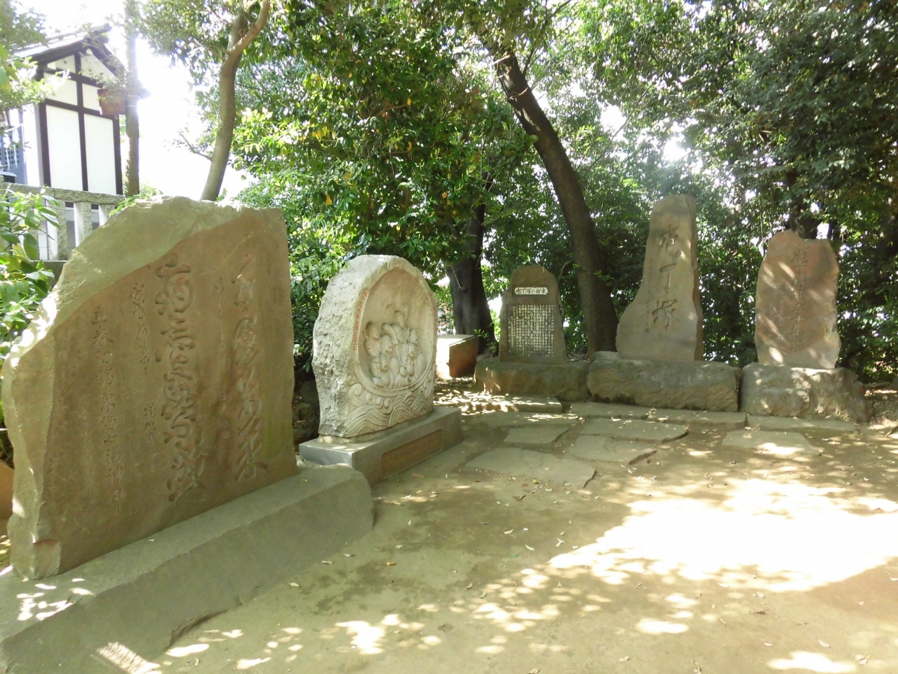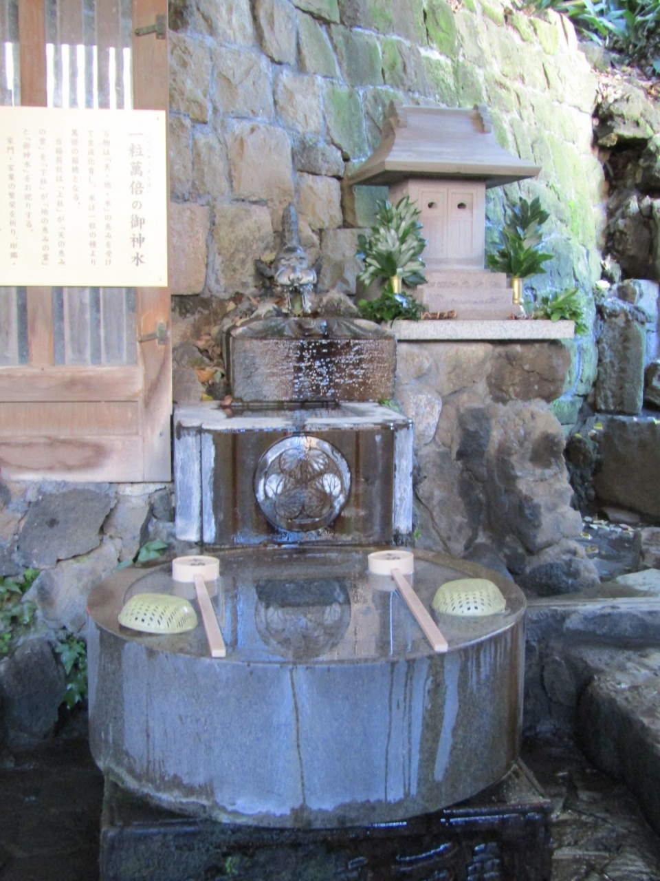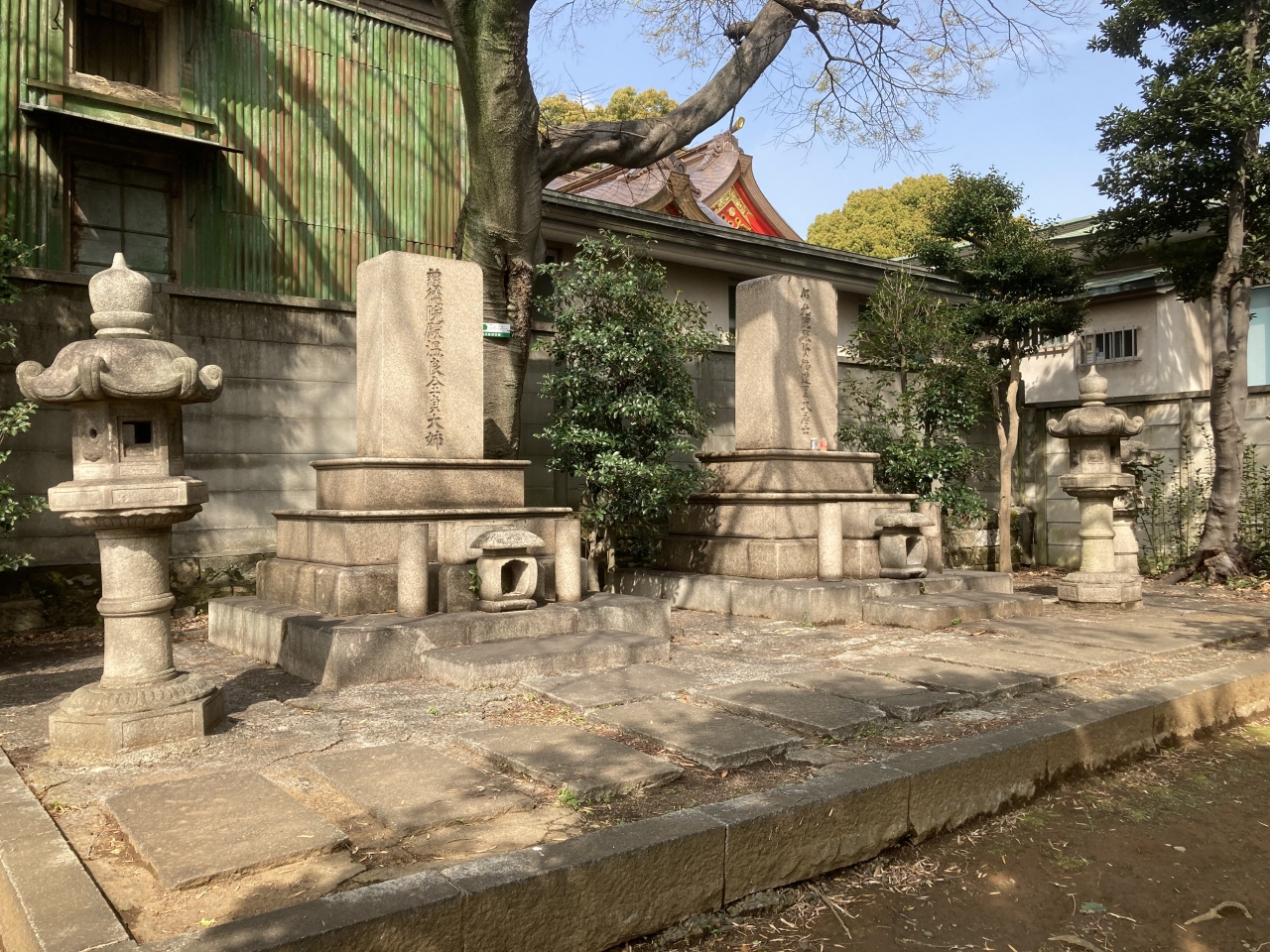 参道は第一京浜(東海道)から西向きに53段の石段となっています。鳥居には登り龍と降り龍が彫られており「双龍鳥居」というそうです。鳥居の隣には、東海七福神の大黒様が鎮座していました。石段を登ると、参道はそのまま真っすぐ、社殿は東向き。朱塗りで比較的新しく感じました。拝殿に向かって右側にある赤い鳥居が連なる阿那稲荷神社には、金運UPで有名な「一粒萬倍の泉」があります。また、両神社の間の道を通って先に進むと、板垣退助のお墓があります。ちなみに、第一京浜の東側200m程には、旧東海道が走っており、品川宿だった場所です。そのため、品川宿の鎮守としても信仰されているそうです。