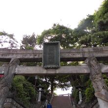 大きな石鳥居に一対の龍が絡み付いています。