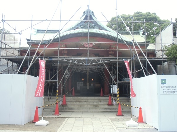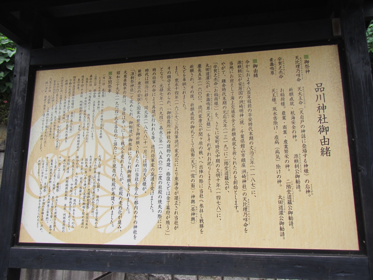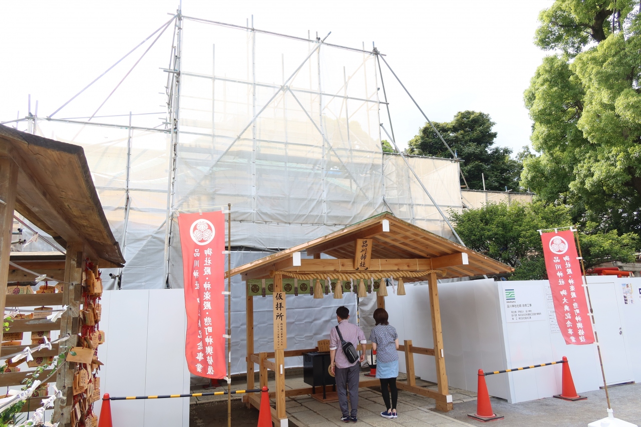 東京十社のひとつでもある品川神社は徳川家康が関ヶ原出陣前に参拝して戦勝祈願した神社として知られています。徳川家の厚い庇護を... 続きを読む受け、社紋も徳川家の家紋「丸に三つ葉葵」となっています。創始は、さらに古く、平安時代末期に、源頼朝が航海安全と祈願成就を祈ったのが、はじまりとも言われています。明治元年、明治天皇が東京の鎮護と万民の安泰を祈る神社と制定した十社のひとつになったことで、広く知られることになりました。現在の社殿は1964年に再建されたものです。合格祈願、健康祈願、商売繁盛、開運招福など、オールマイティにご利益がある神社です。訪ねた時は、全面修復中でした。 閉じる